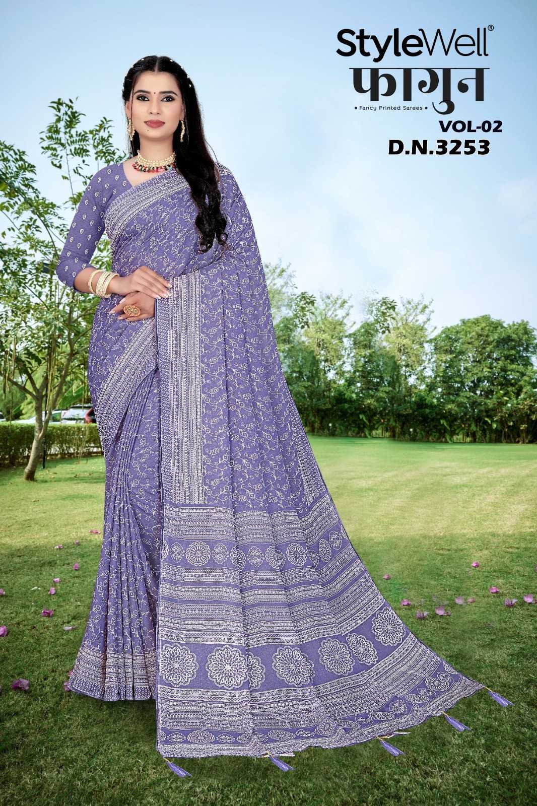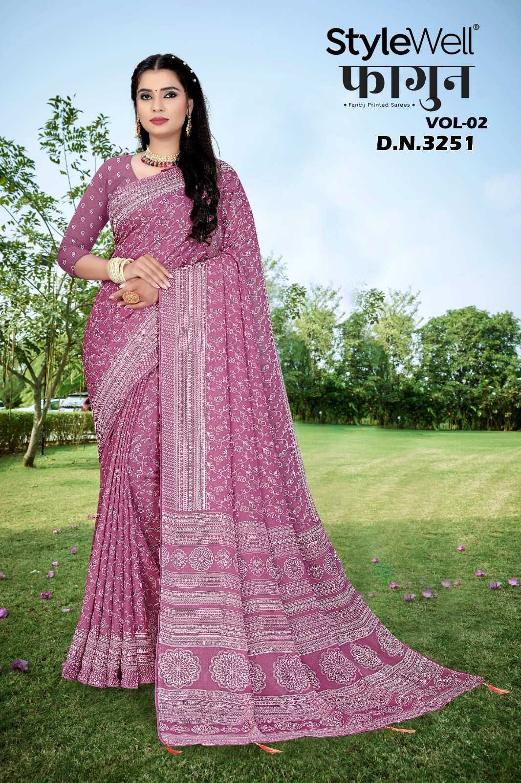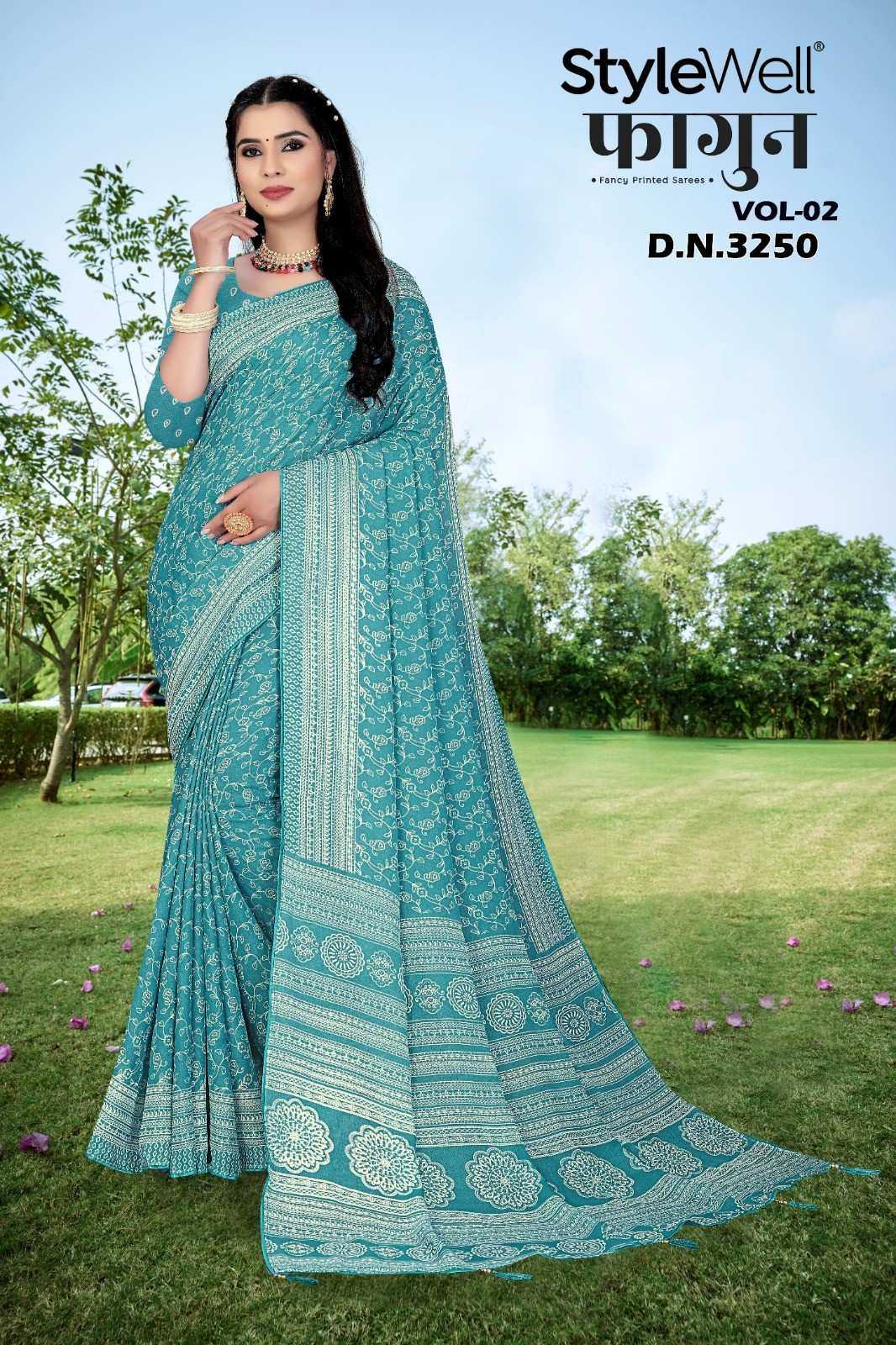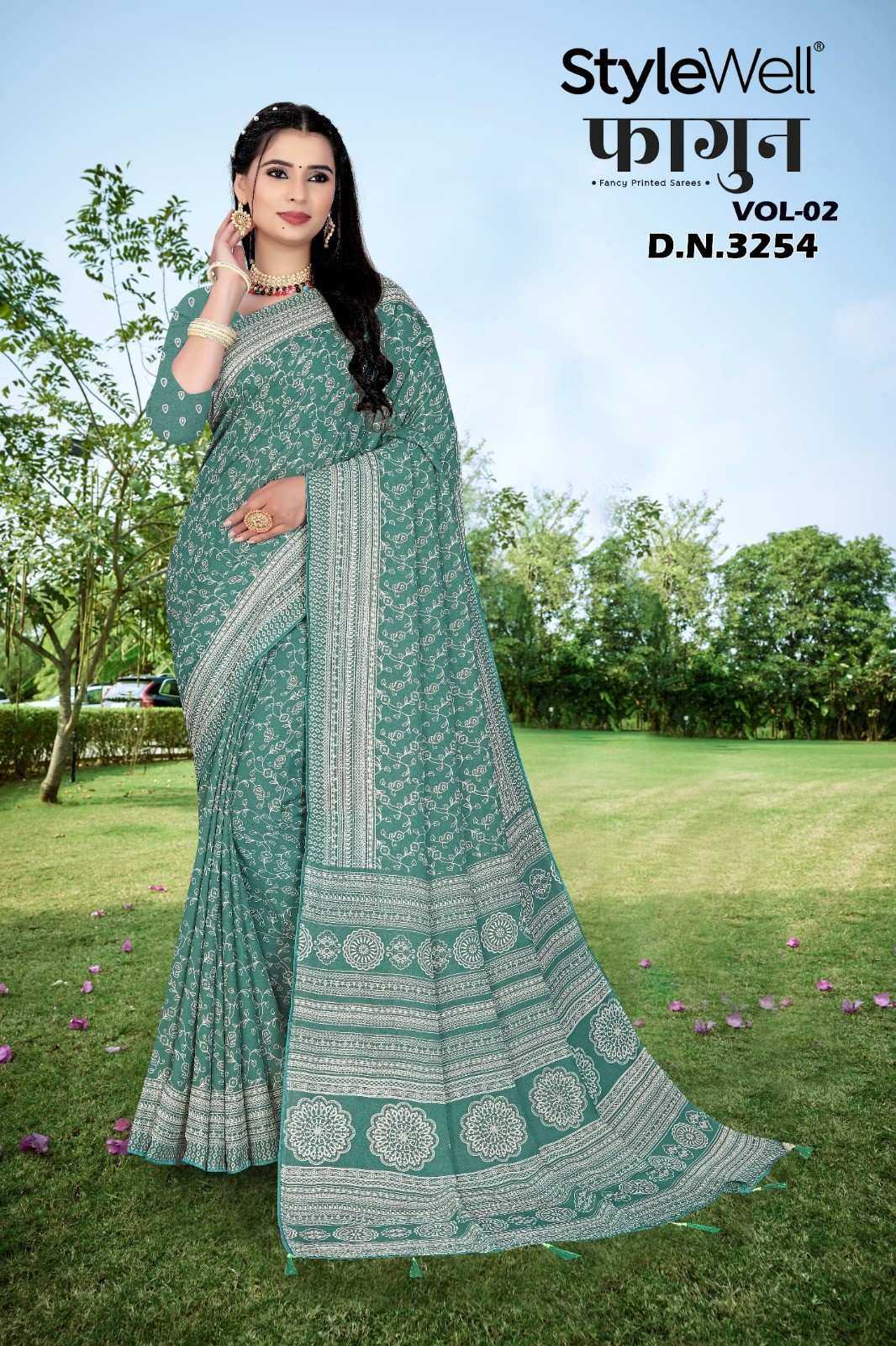 faagun vol 2 by stylewell dull moss chiffon printed saree