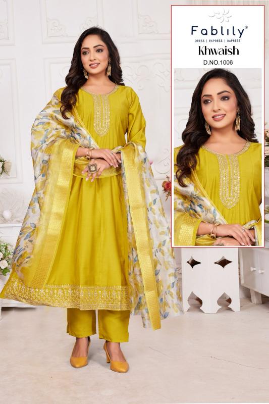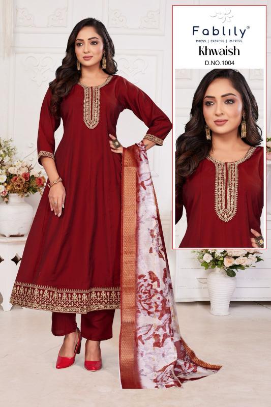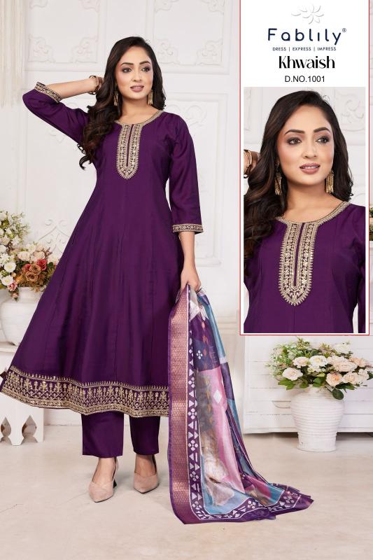 fablily presents khawaish readymade silk modern combo salwar kameez