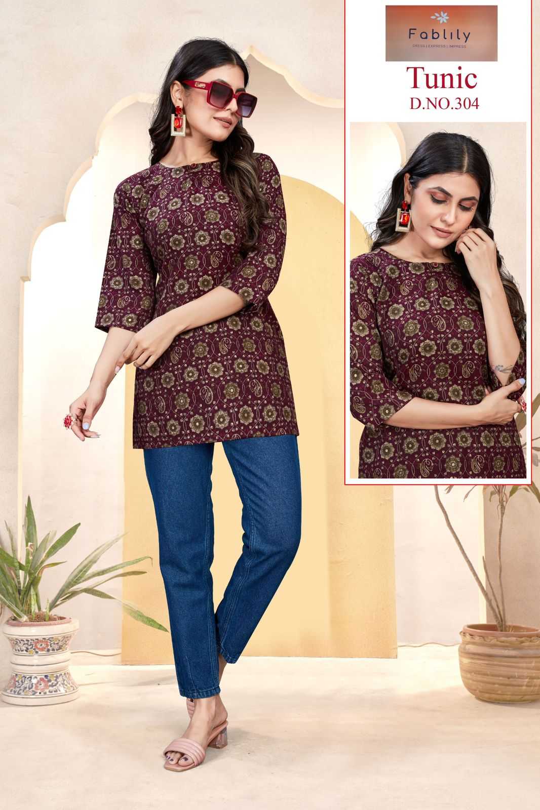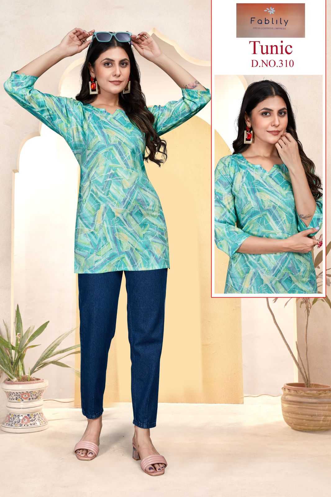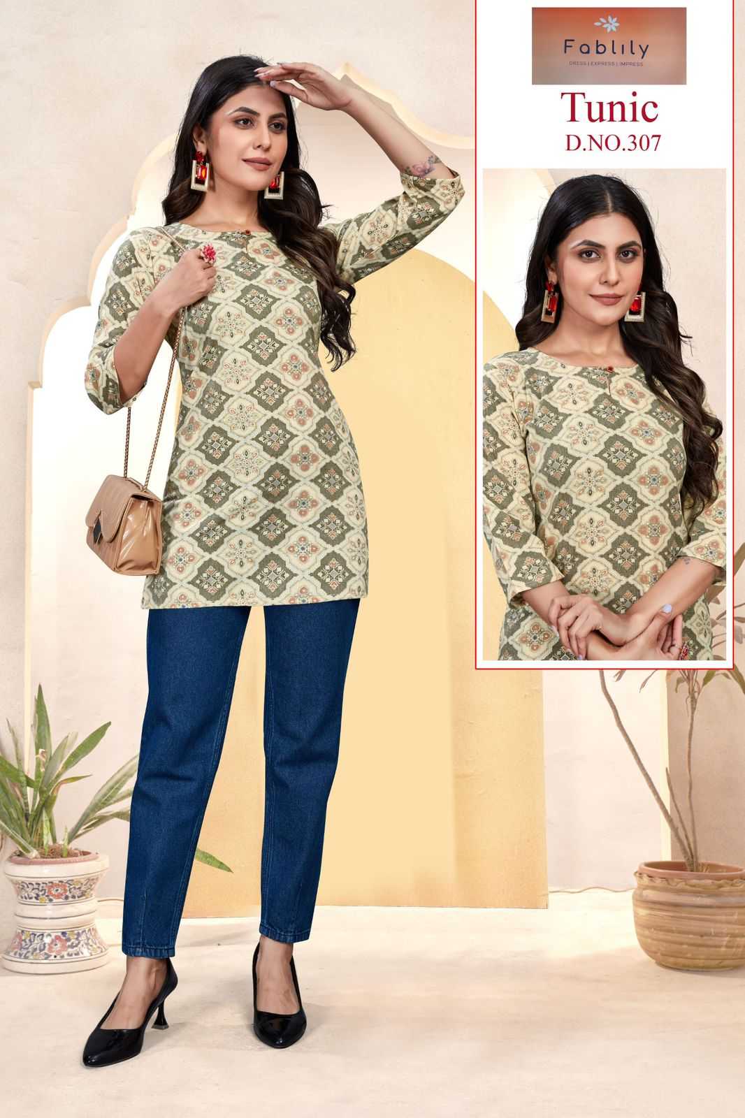 fablily presents tunic stylish outfit heavy capsule foil print readymade short top exports