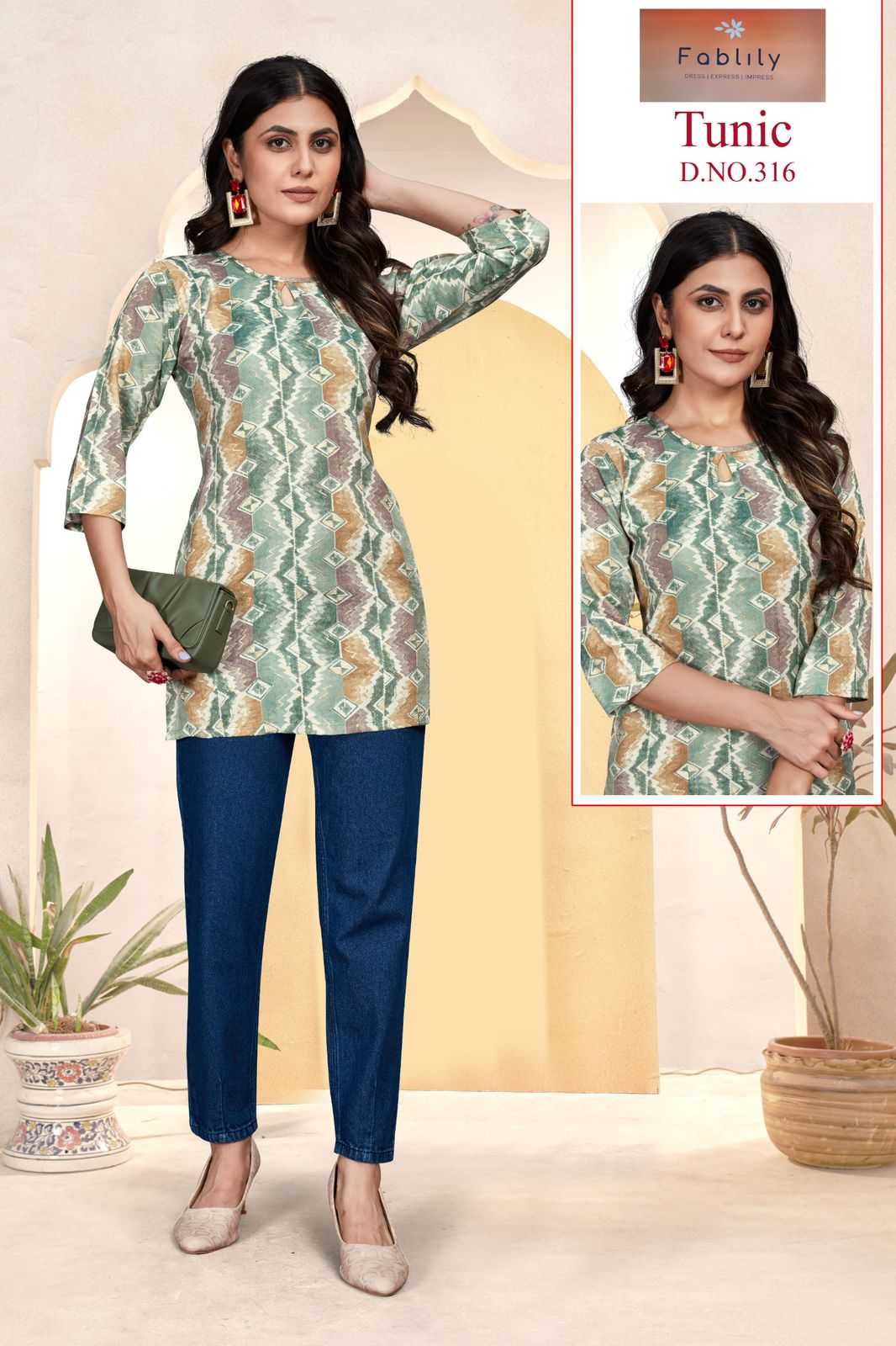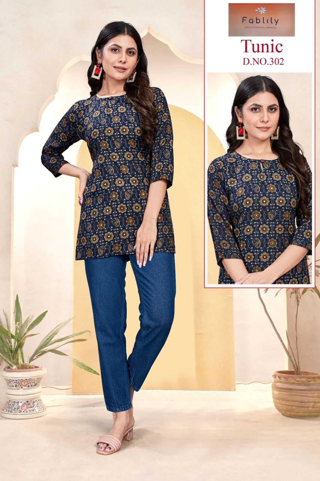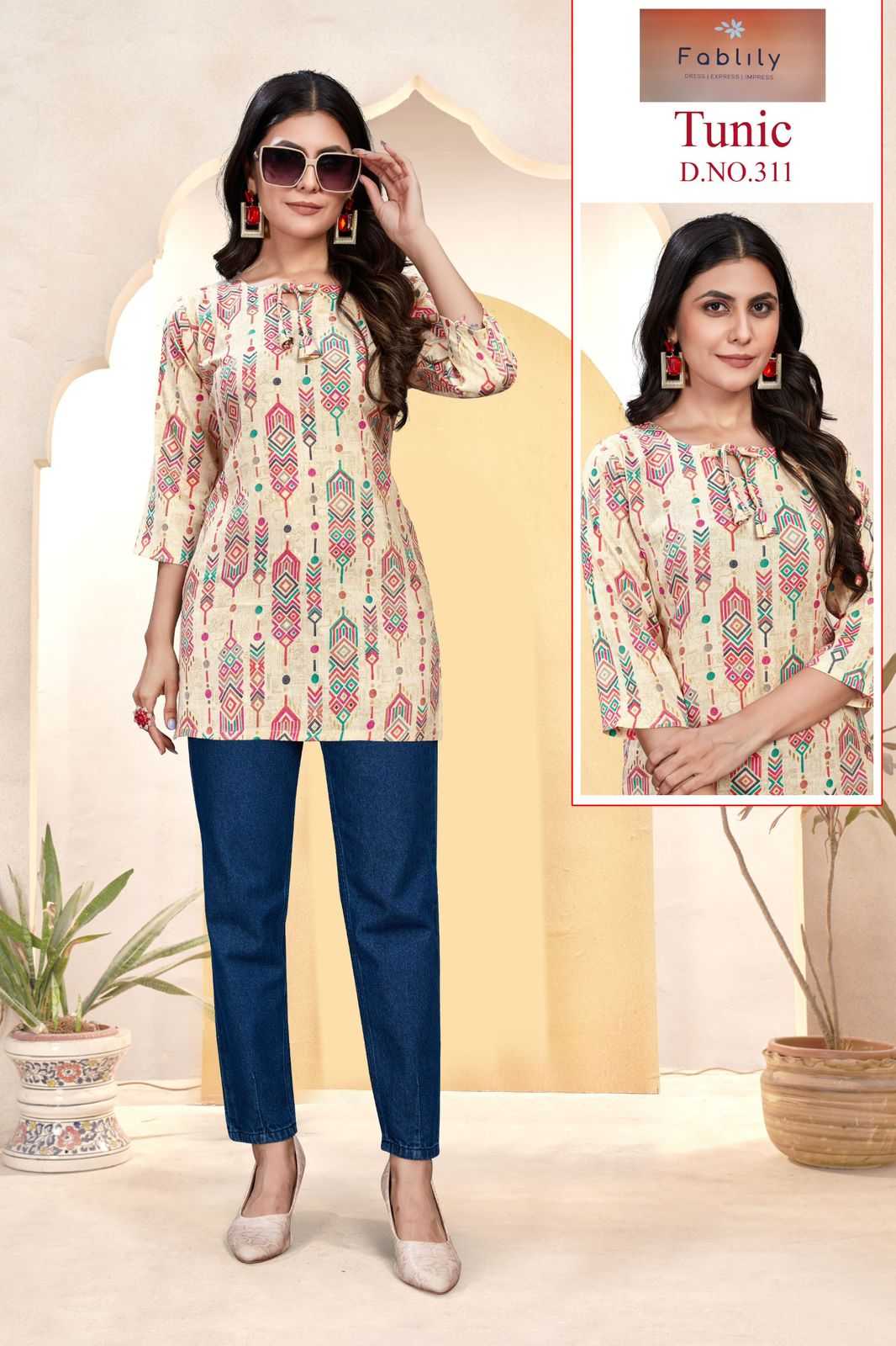 fablily presents tunic stylish outfit heavy capsule foil print readymade short top exports