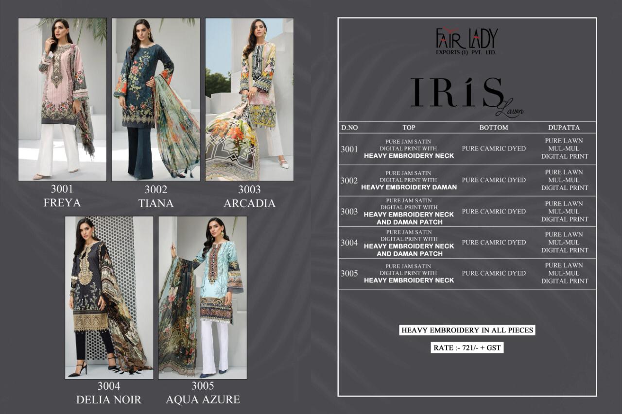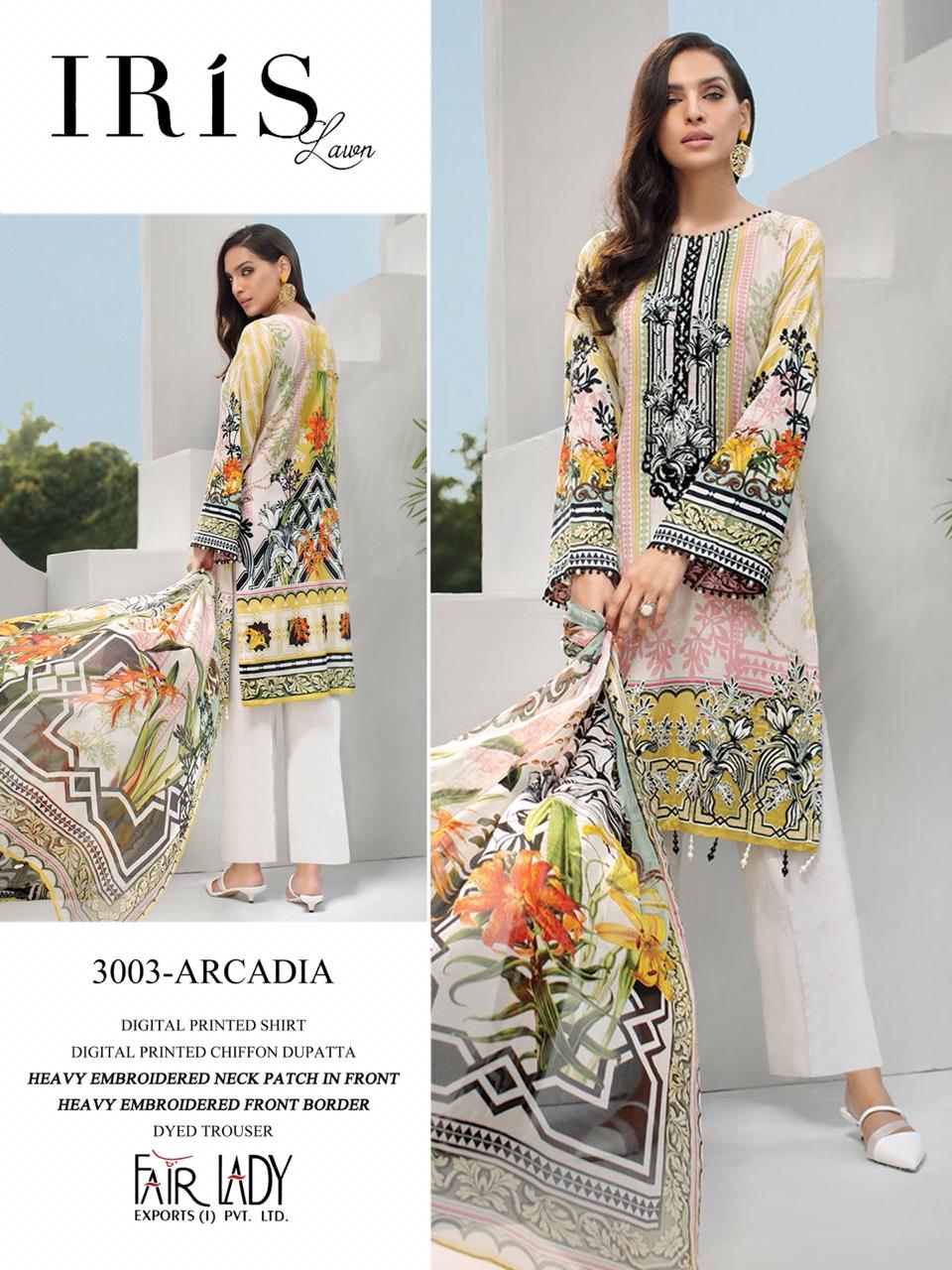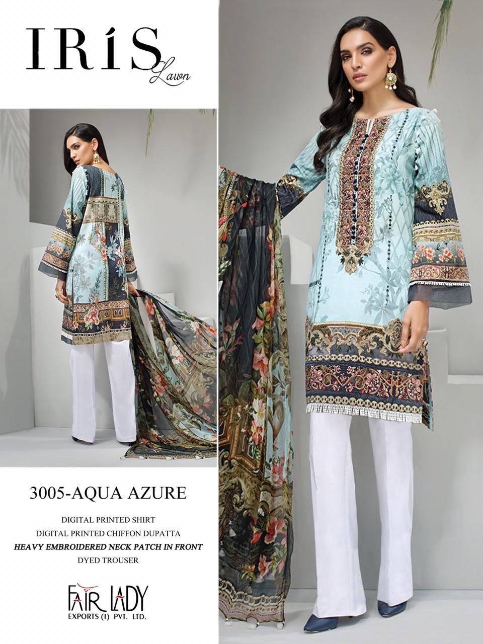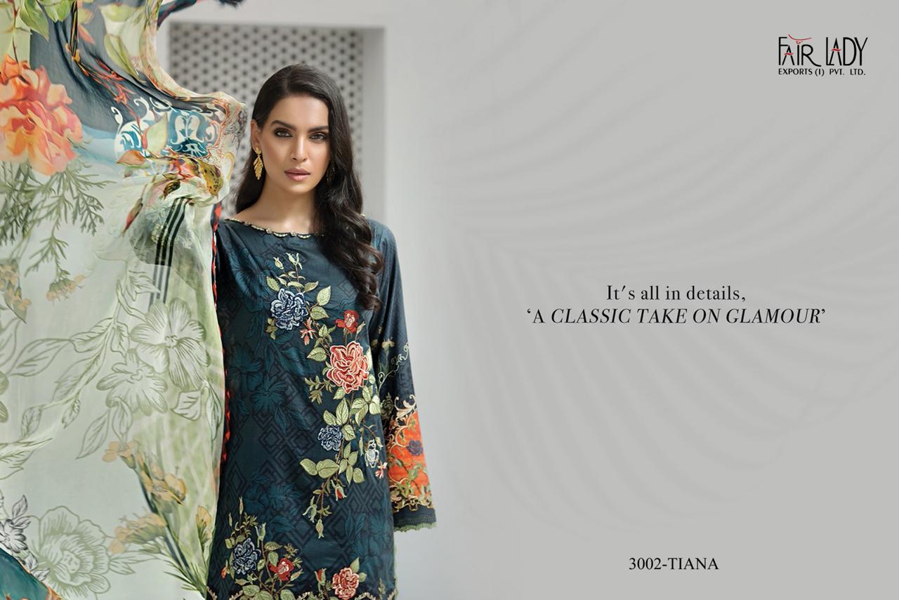 Thank you for your support Today we MUMTAZ ARTS™ are launching our new firm FAIR LADY EXPORTS(I)PVT LTD™ with an exclusive series of digital print suits with exclusive heavy embroidery patches CATALOGUE NAME:- FAIR LADY IRIS JAM SATIN DESIGNS:- HIT 5 DESIGNS SET FABRIC DETAILS:- TOP:- JAM SATIN PRINT *WITH EMBROIDERY * DUP:- PURE LAWN MUL MUL WITH EXCLUSIVE PRINTS BOT:- PURE DYED COTTON RATE:-721/- + GST LAWN _ALL DETAILS REGARDING EMBROIDERY PATCHES IN RATE LIST_ *FABRIC + EMBROIDERY QUALITY UN COMPARABLE * |