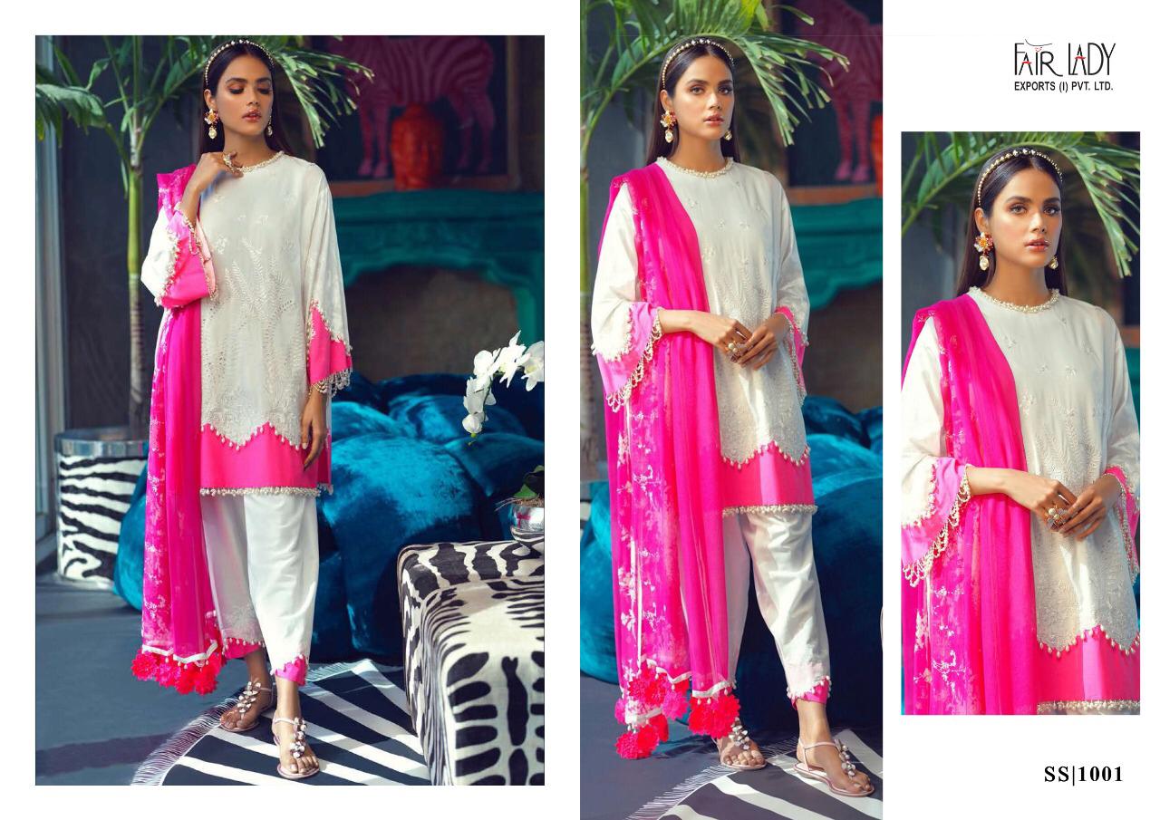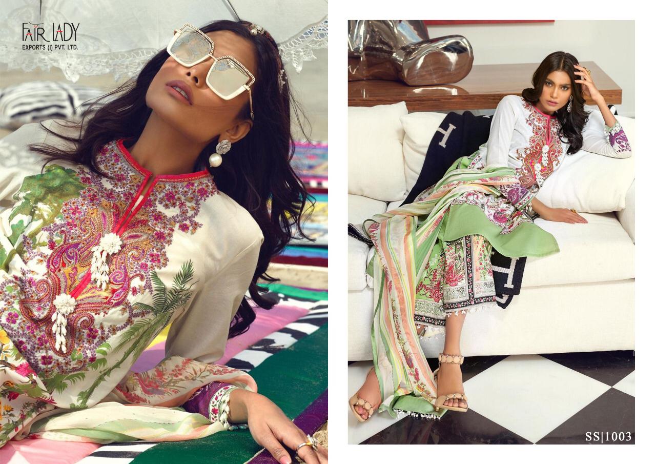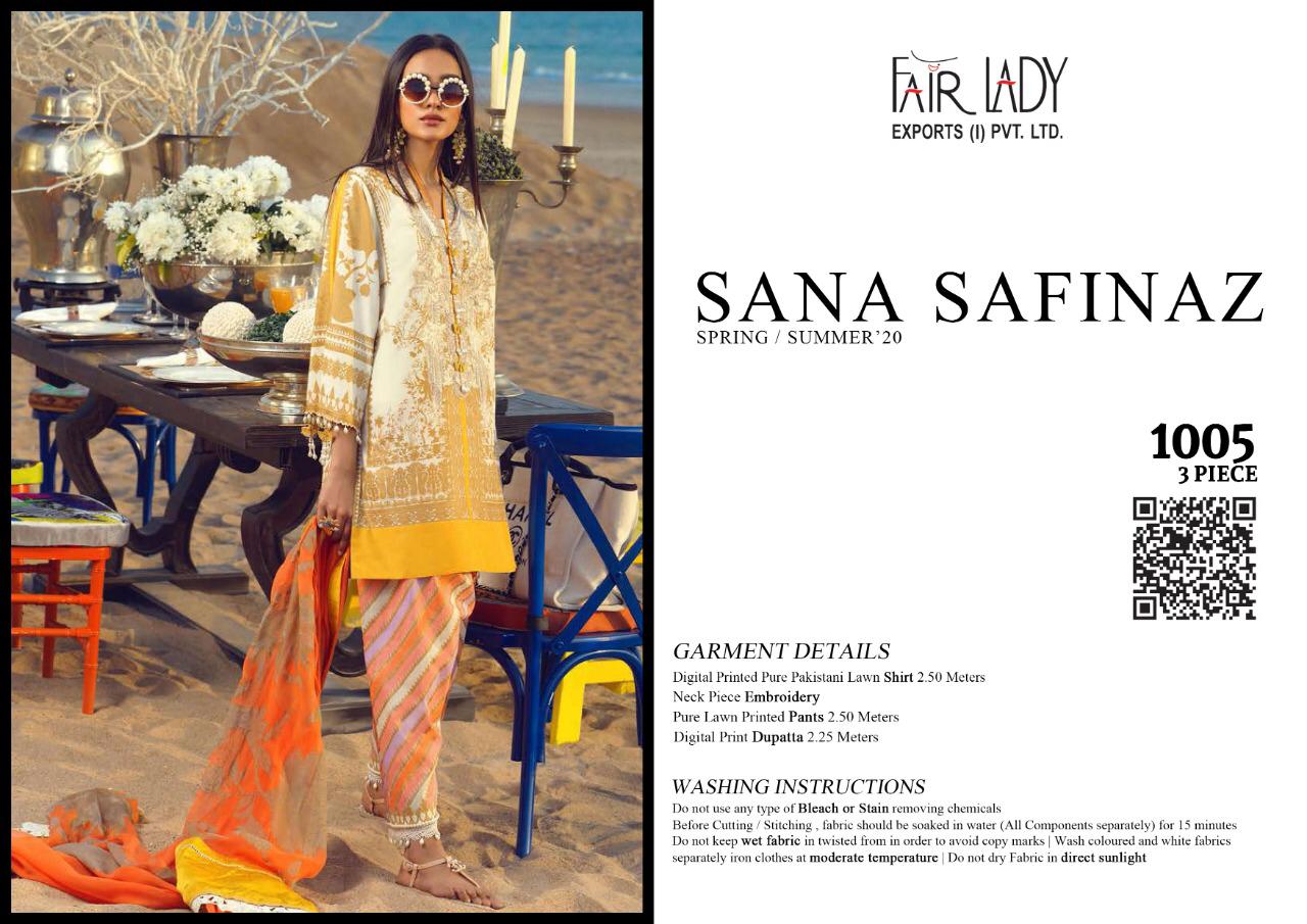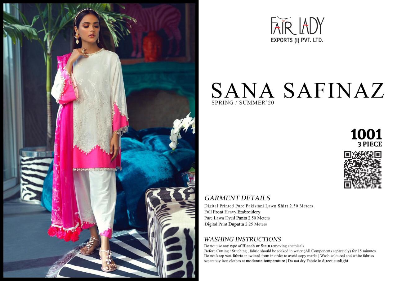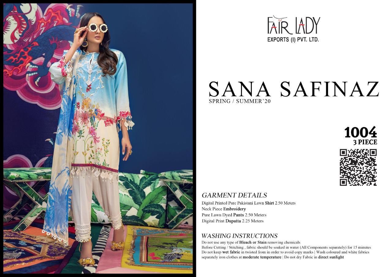 CATALOGUE NAME:- FAIR LADY SANA SAFINAZ SATIN DESIGNS:- HIT 5 DESIGNS SET FABRIC DETAILS:- TOP:- JAM SATIN PRINT *WITH HEAVY EMBROIDERY * DUP:- PURE LAWN MUL MUL & PURE NAZNEEN DUPATTA BOT:- DYED LAWN COTTON #03 & 05 BOTTOM PRINTED RATE:-729/- + GST LAWN RATE:-699/- + GST CHIFFON _HEAVY EMBROIDERY PATCHES IN ALL SUITS_ *FABRIC + EMBROIDERY QUALITY UN COMPARABLE * |