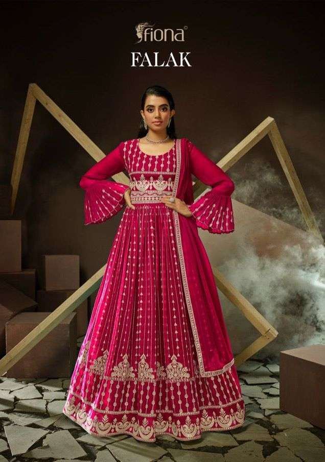 falak by fiona georgette exclusive long readymade gown with dupatta