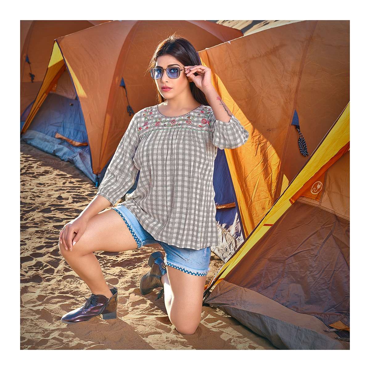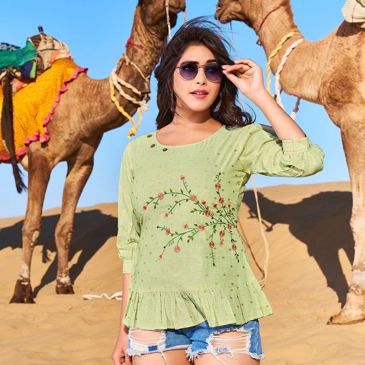 fame by yami fashion rayon embroidery ladies short top western collection
