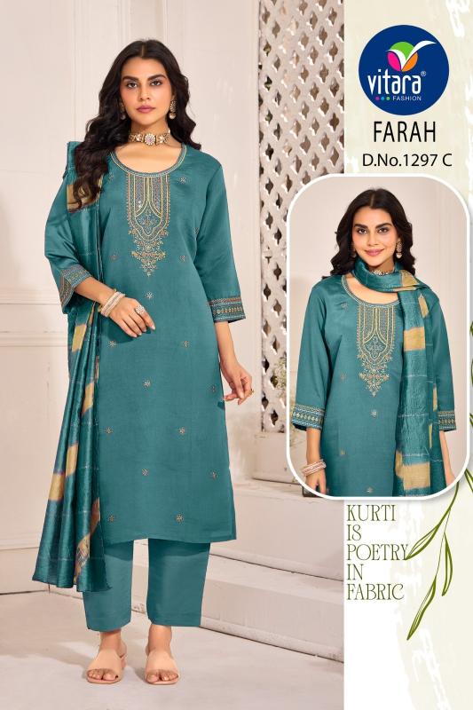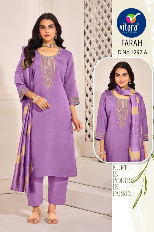 farah by vitara fashion roman silk readymade elegant style combo salwar suit set