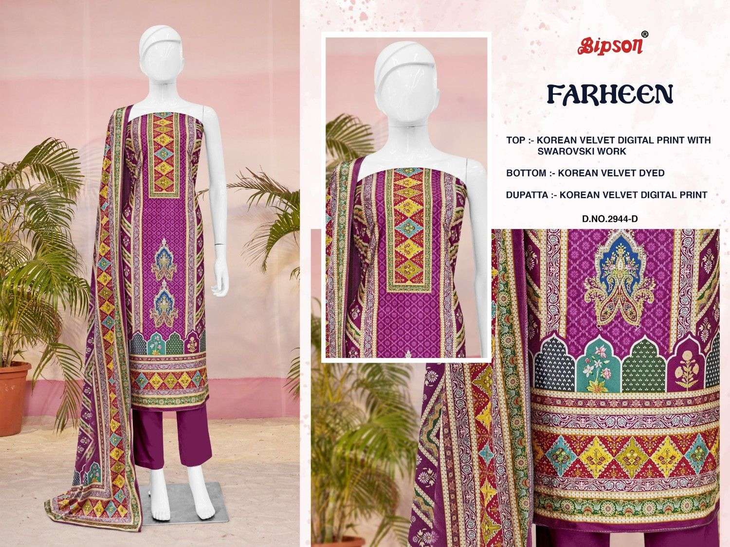 farheen 2944 by bipson prints korean velvet pretty look winter unstitch suit