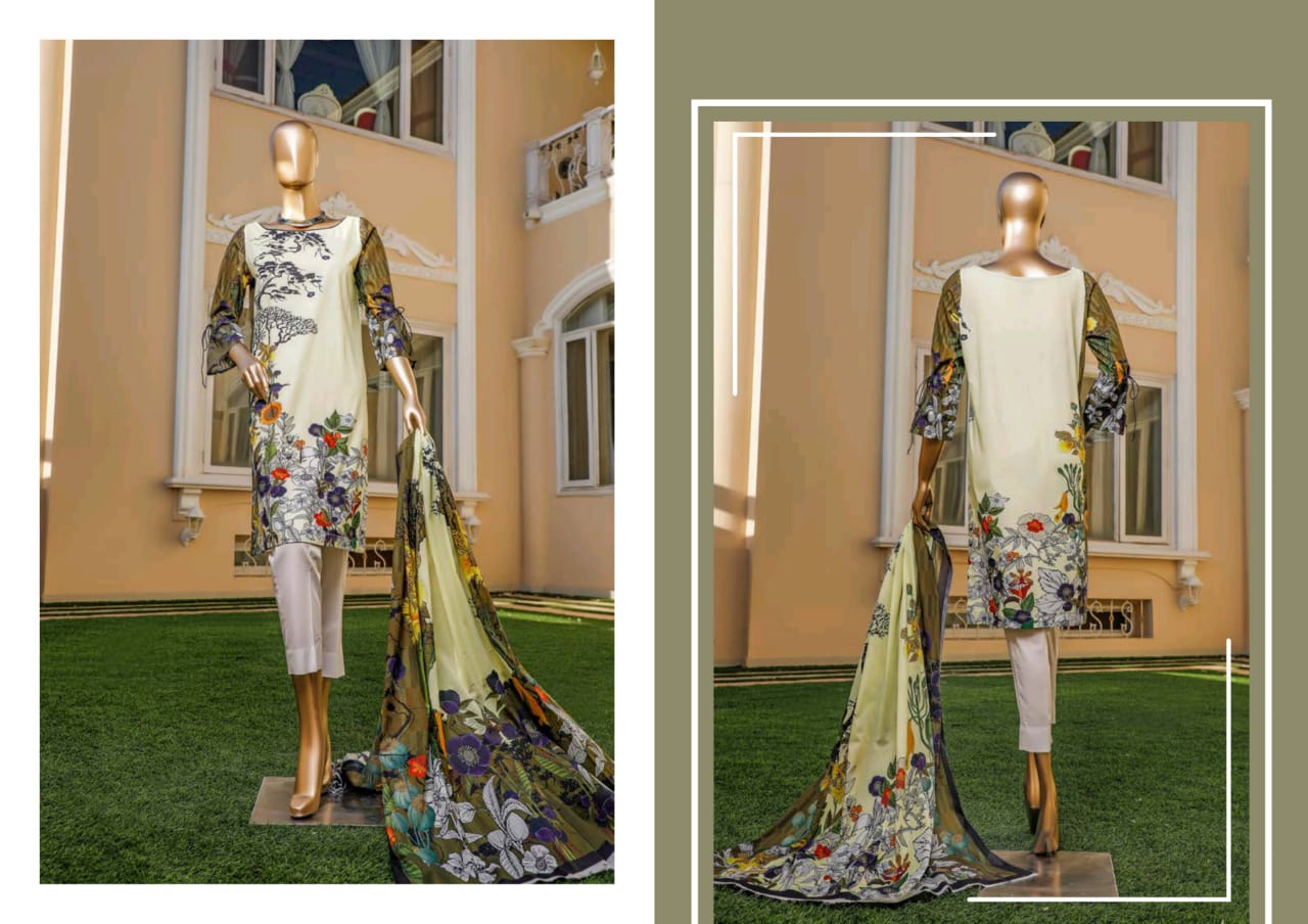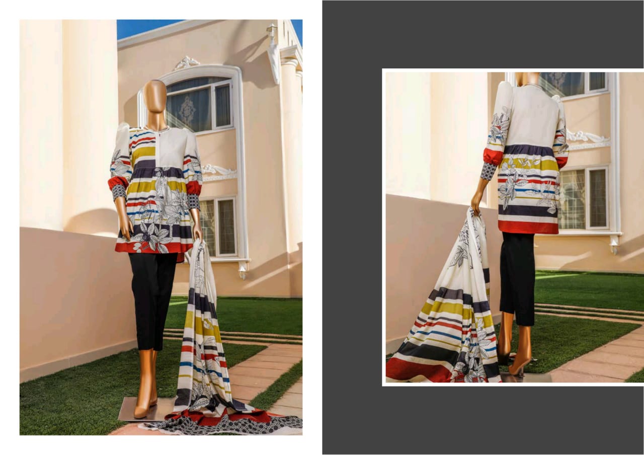 For the first time ever, MoosaJee by Farooq Textile launching their beautiful and exciting new collection of digital prints of 2 piece suits named Allure. Pree Booking Start! *Allure 2pc By MoosaJee * 10 Desings with 1 colours= 10Pc set Rate ~ 1195/-₹ DESCRIPTION: Digital Print Lawn Shirt *Digital Print Voile Lawn Dupata Note: Fancy Bag Packing, Limited Stock! NOTE:- TOP & DUPATTA. ONLY |