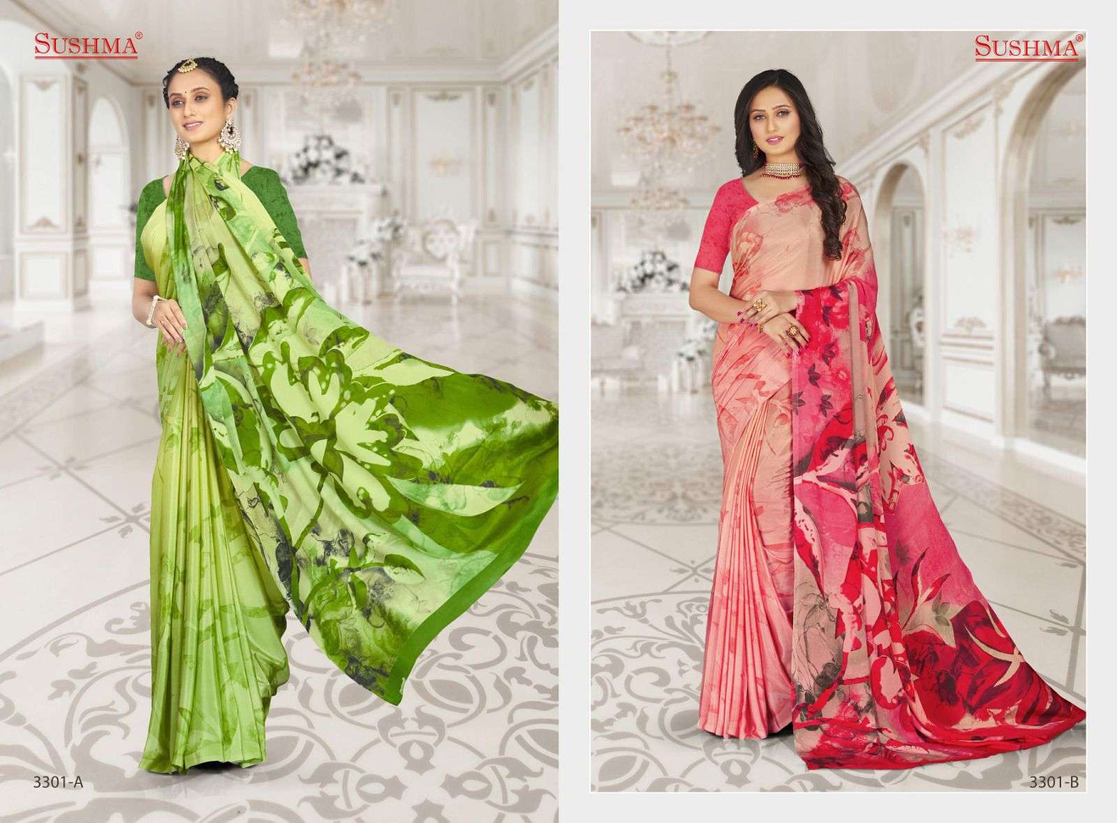 fashion 33 by sushma adorable flower print fancy crape saree collection