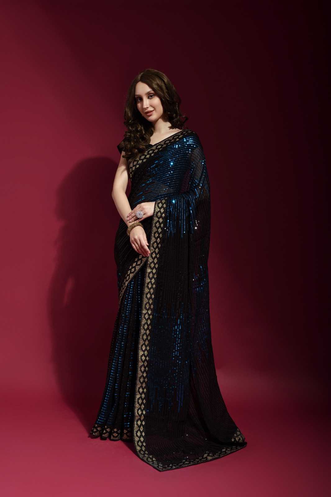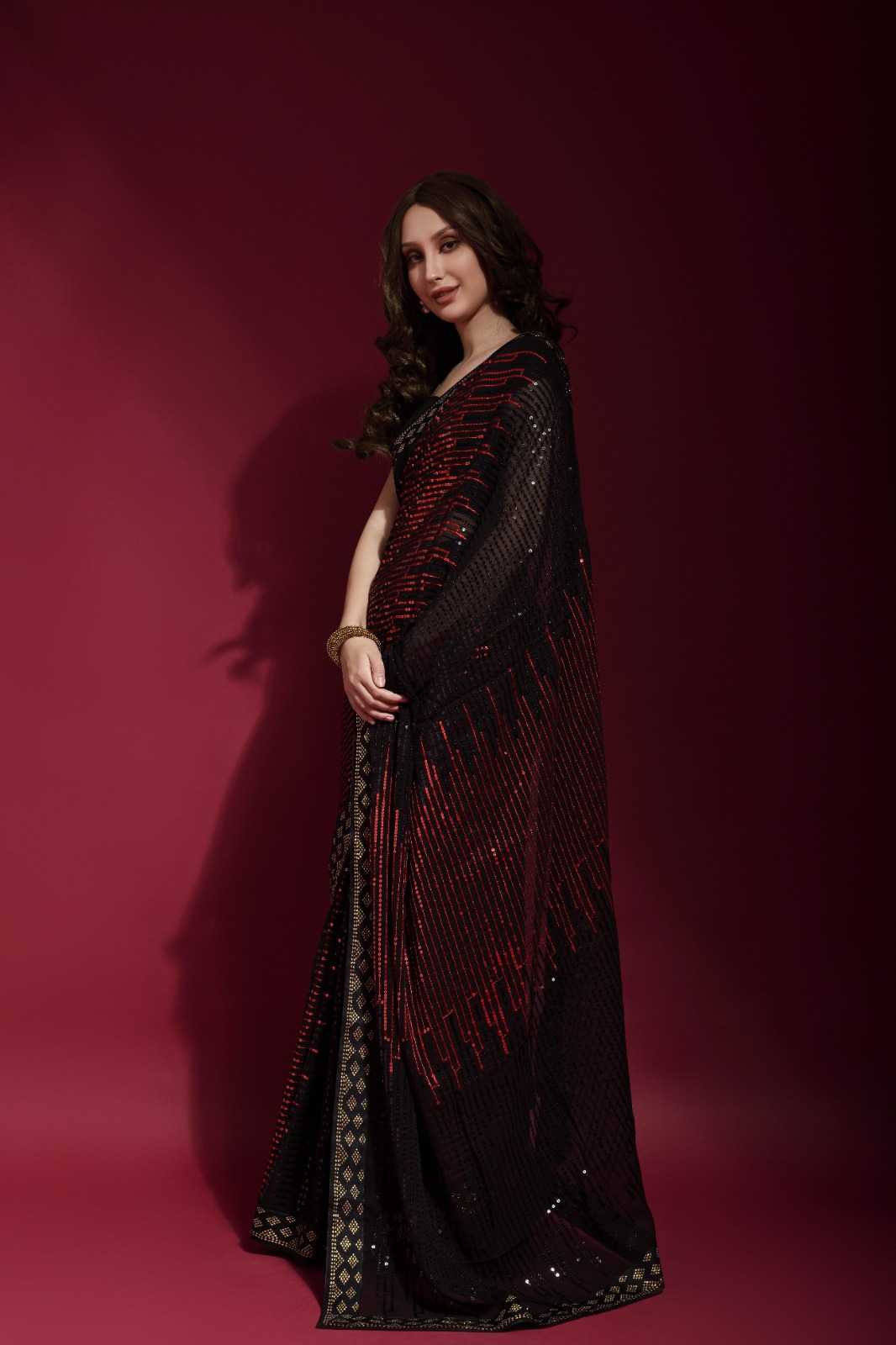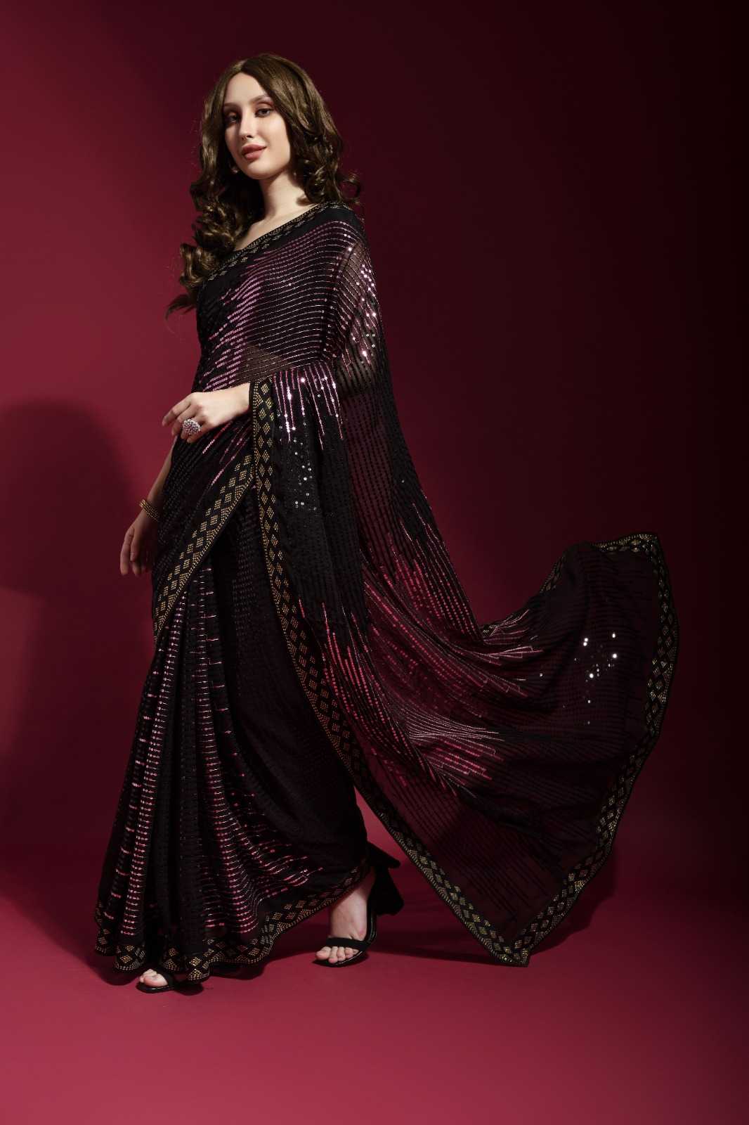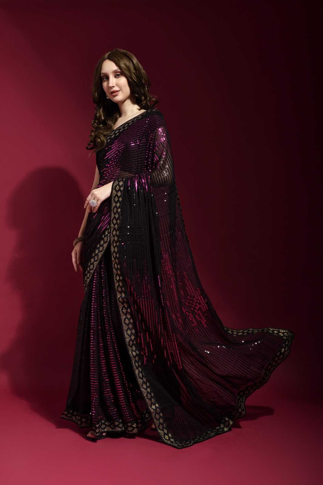 fashion berry pyramid beautiful sequence embroidery work sarees