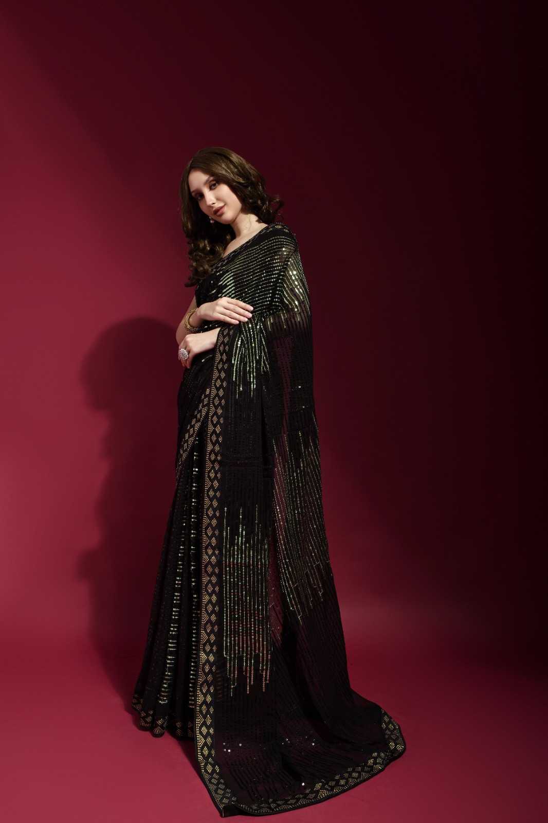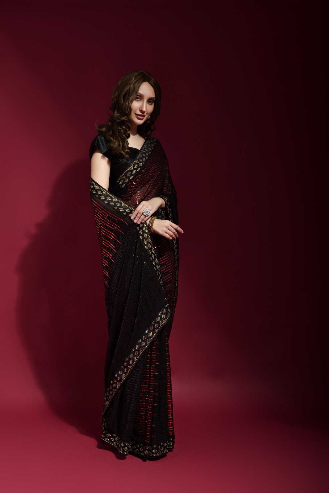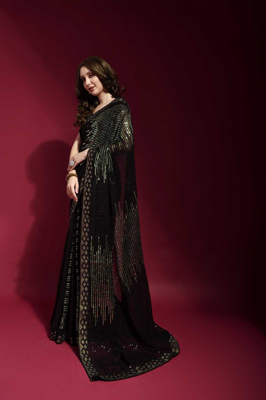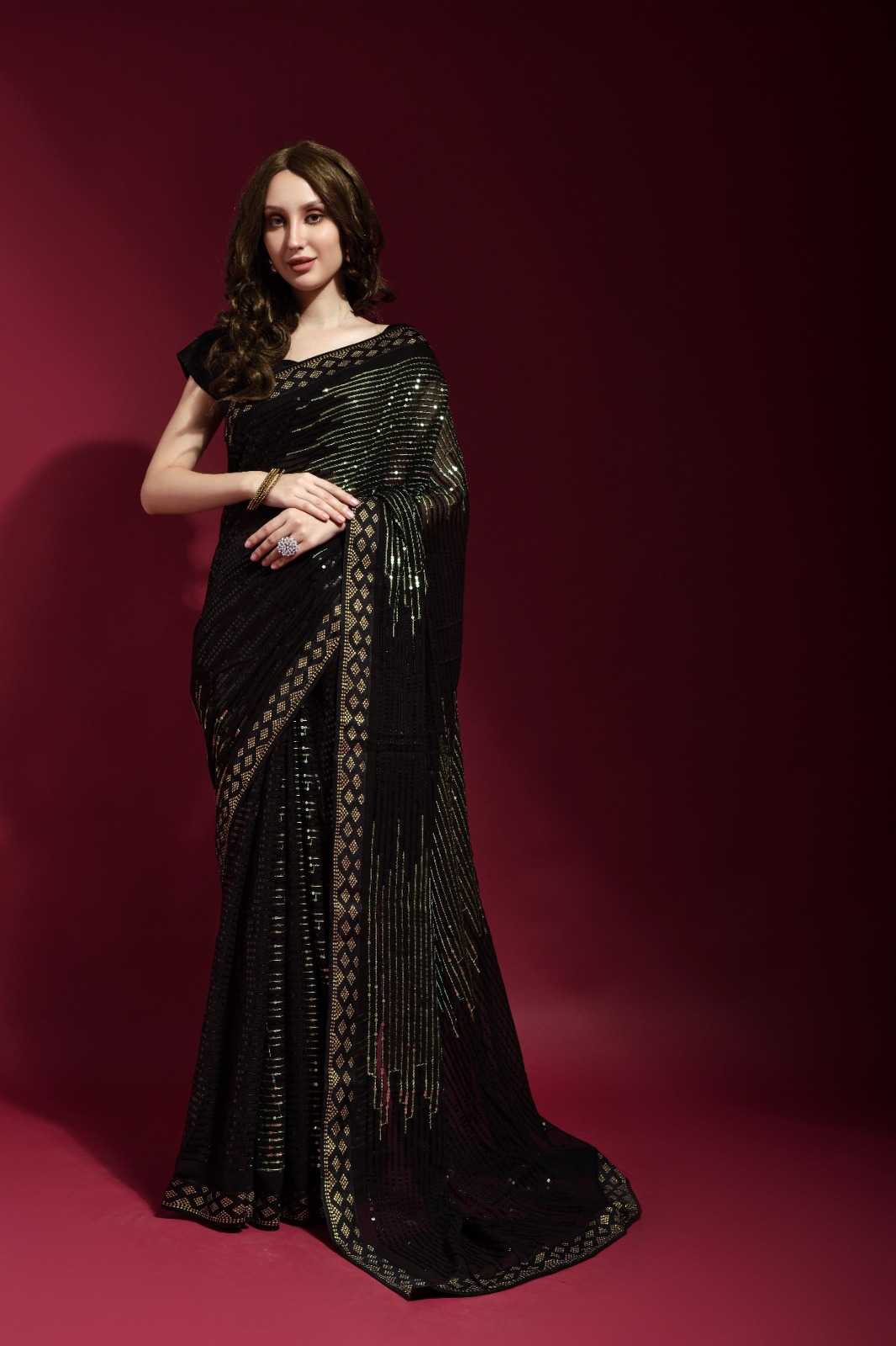 fashion berry pyramid beautiful sequence embroidery work sarees