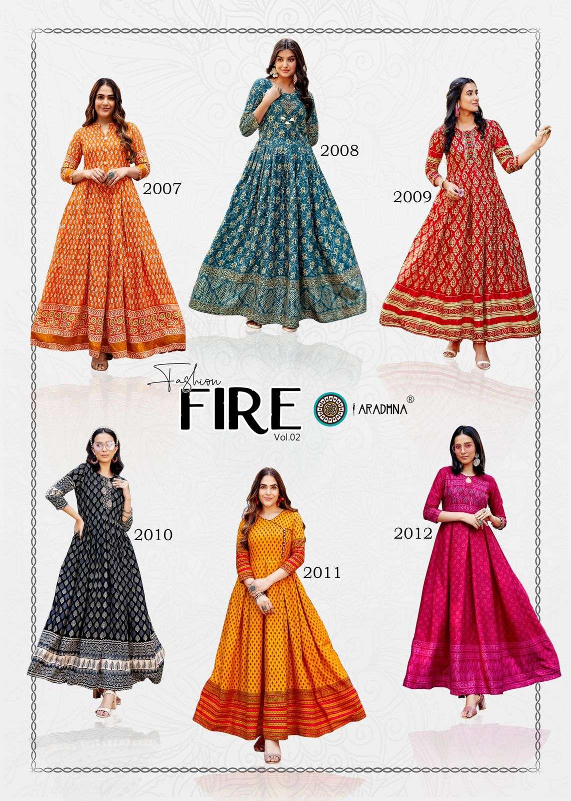 🦚 ARADHNA 🦚 🍂Catalog - FASHION FIRE VOL 2 Fabric : Rayon Print With Embroidery Work (Liva Approved) 🧥Size : S(36), M(38), L(40), XL(42), 2XL(44), 3XL(46), 4XL(48) 👜Designs : 12 💰Rate : 550 Rs + 5% GST Ready to Dispatch