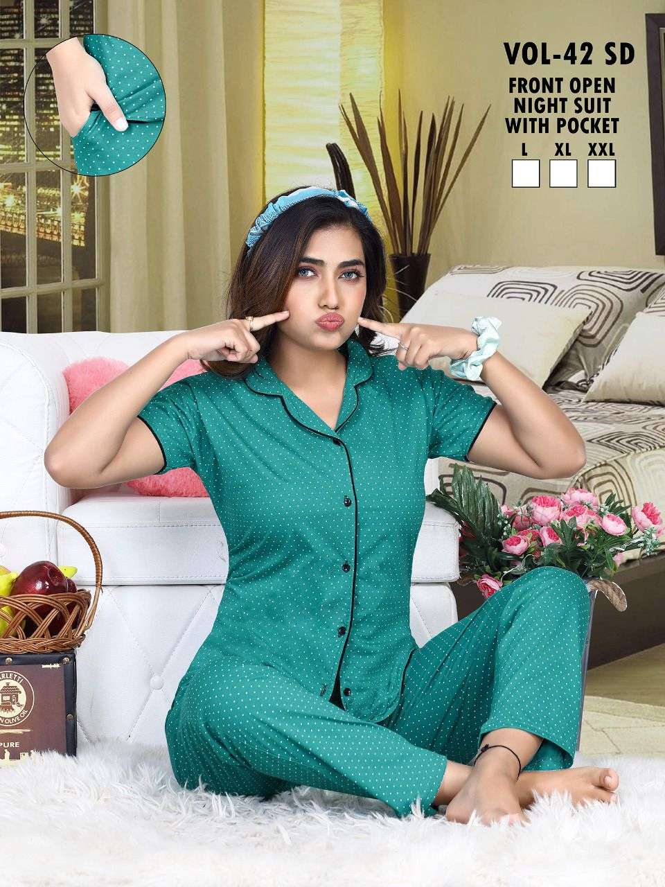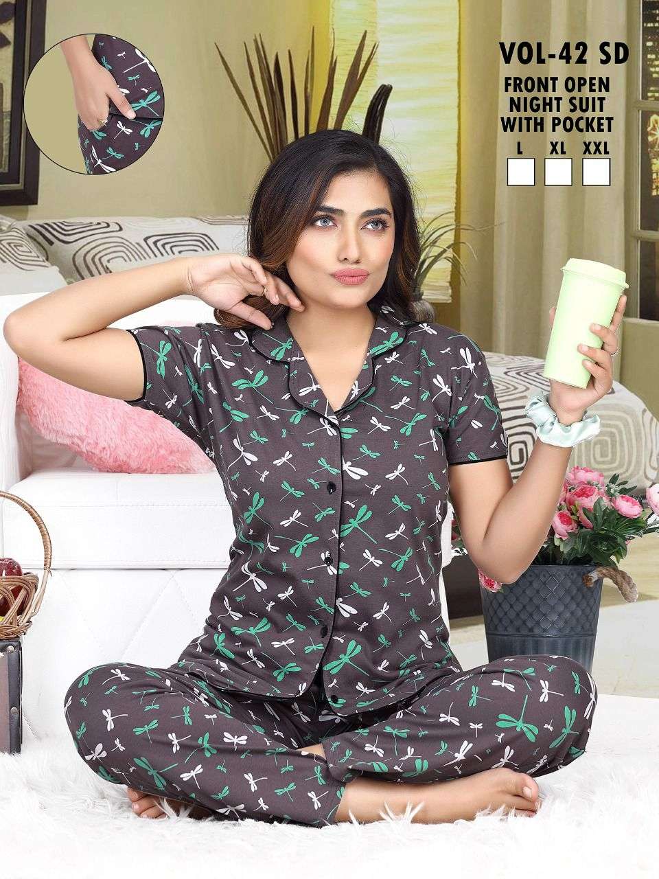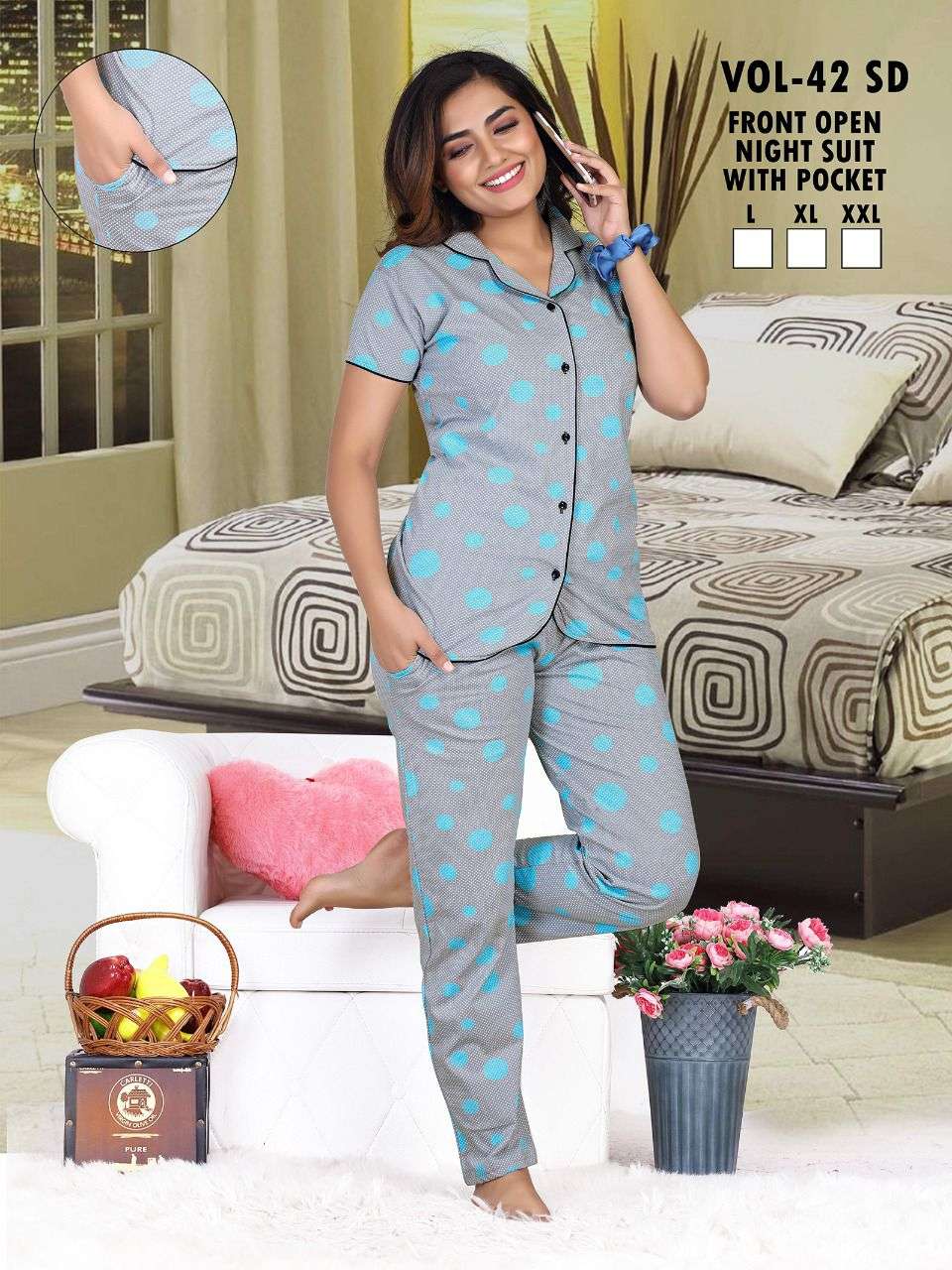 FASHION TALK C.NS VOL.42 SD Heavy Shinker Hosiery Cotton Collar Night Suits With Pocket NIGHT SUIT CATALOG WHOLESALER BEST RATE