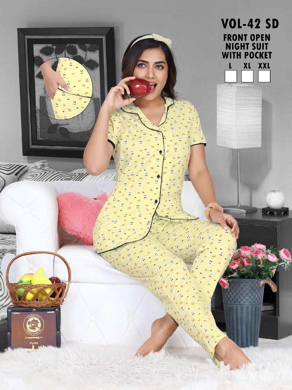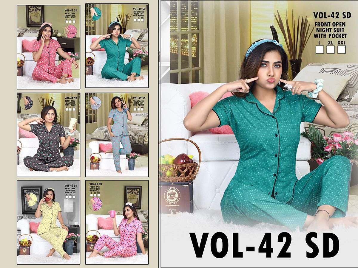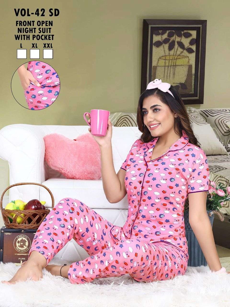 FASHION TALK C.NS VOL.42 SD Heavy Shinker Hosiery Cotton Collar Night Suits With Pocket NIGHT SUIT CATALOG WHOLESALER BEST RATE