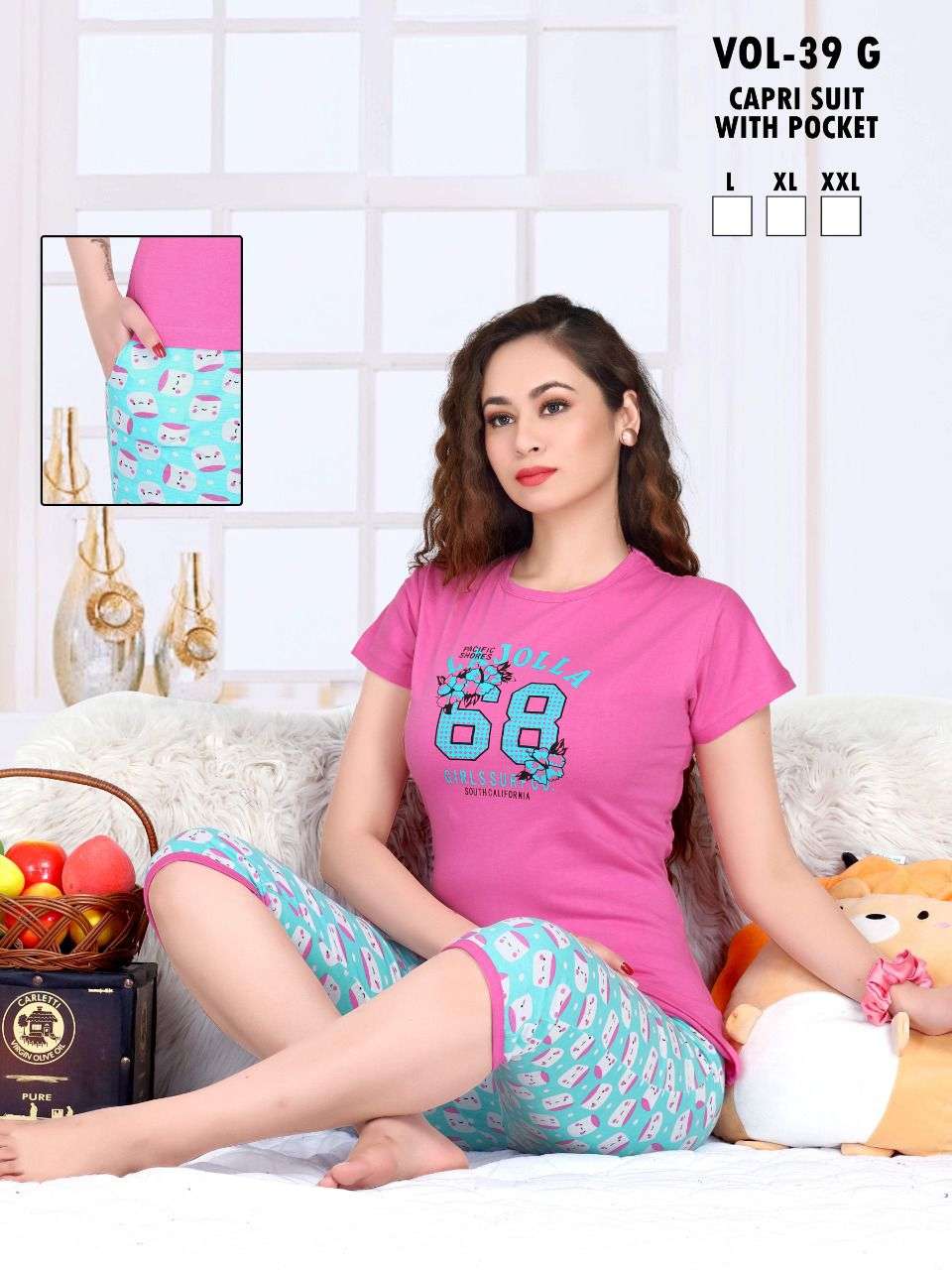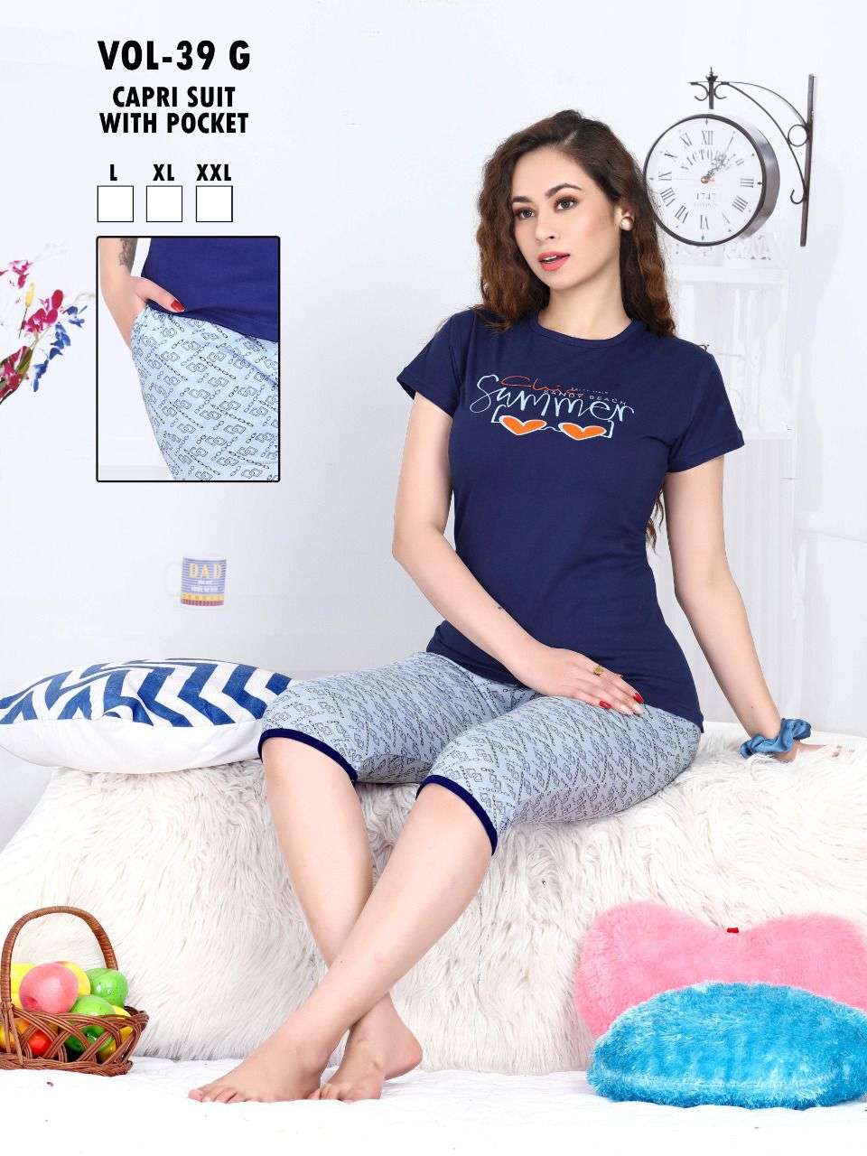 FASHION TALK CAPRI VOL.39 G Heavy Shinker Hosiery Cotton Night Suits With Pocket Capri CATALOG WHOLESALER BEST RATE