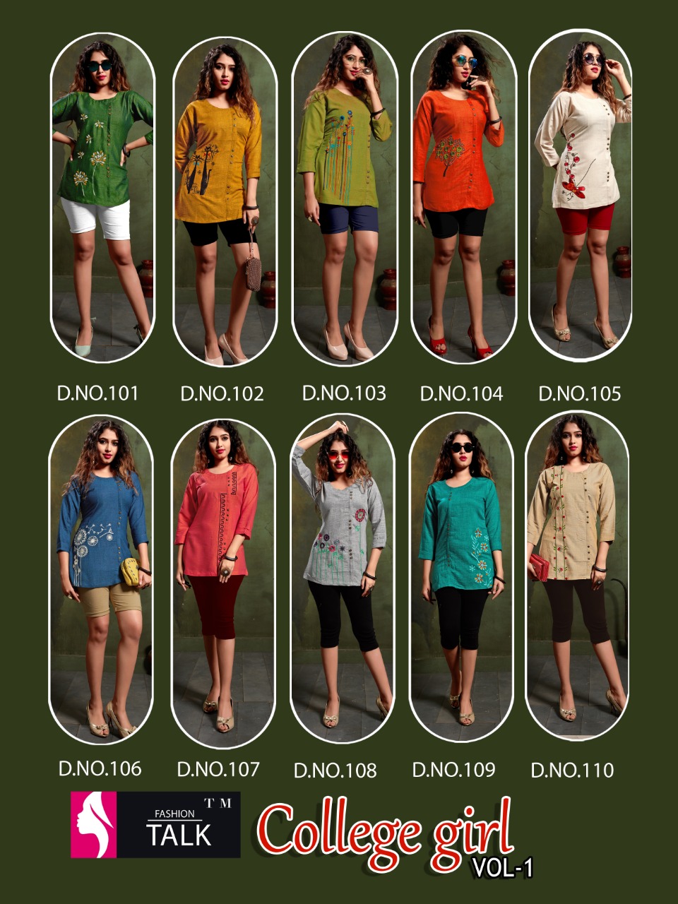 Catalogue Name COLLEGE GIRL VOL.1 Details Fabrics & Style * - MAGIC TWO TON RAYON 14 KG WITH HEAVY EMBROIDERY WORKConcept SHORT TOP Size - XXL Designs - 10 PCs in a bag Rate - RS. 335 + 5⃣%GST |