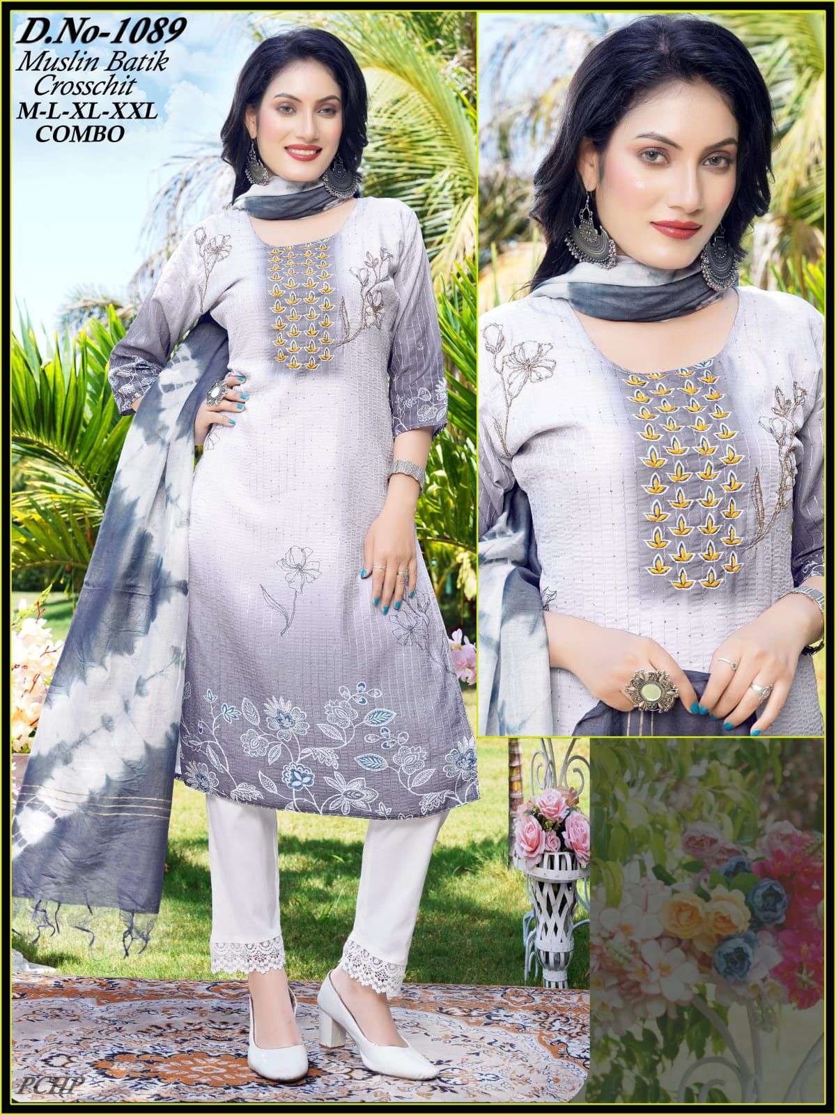 FASHION TALK COMBO 1089 MUSLIN BATIK PRINT CROSSET READYMADE SUIT COMBO WHOLESALER BEST RATE