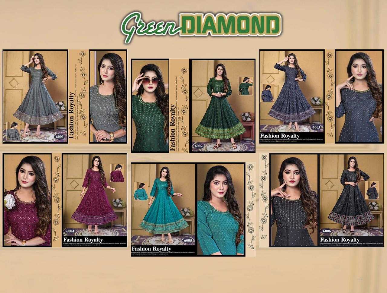 🎀Launch New Super Fancy Kurti Catalogues BY FASHION TALK. 🎀 📕Catalogue name :" GREEN DIAMOND V1 👌🏻" 💵Rate : 490/- only 💵 👗Designs : 06 ✂Sizes : S, M, L, XL, XXL, 3XL, 4XL & 5XL 👘Fabric Details : Top - Finest Quality of Pure 14 Kg Rayon ⏺ KALI PATTERN FLARED KURTA - REGULAR ✅ LENGTH - 48” |