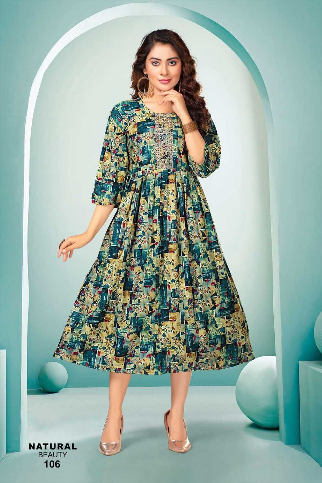 Name : FASHION TALK NATURAL BEAUTY VOL.1 Fabrics : Heavy Rayon Foil Print Rate : 545/- + GST 5% |
