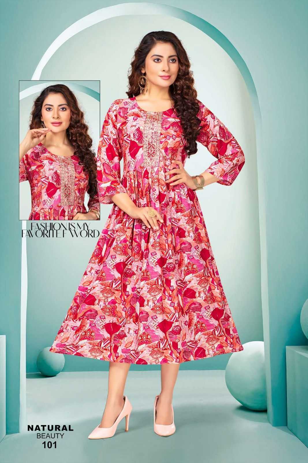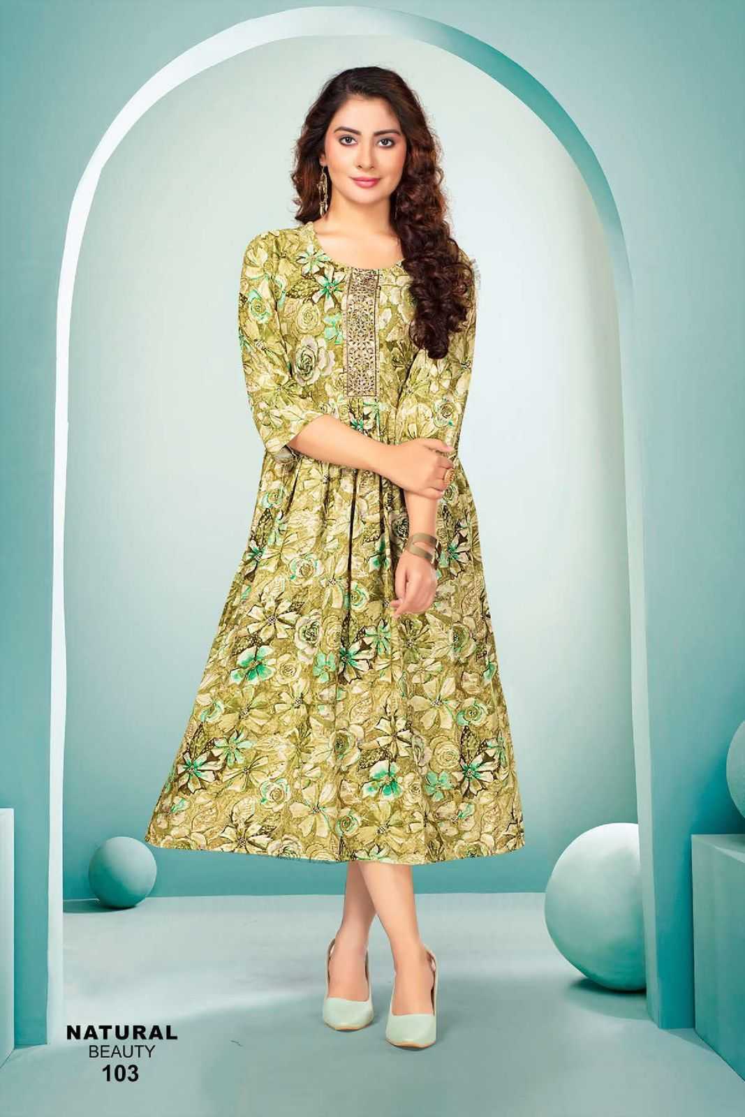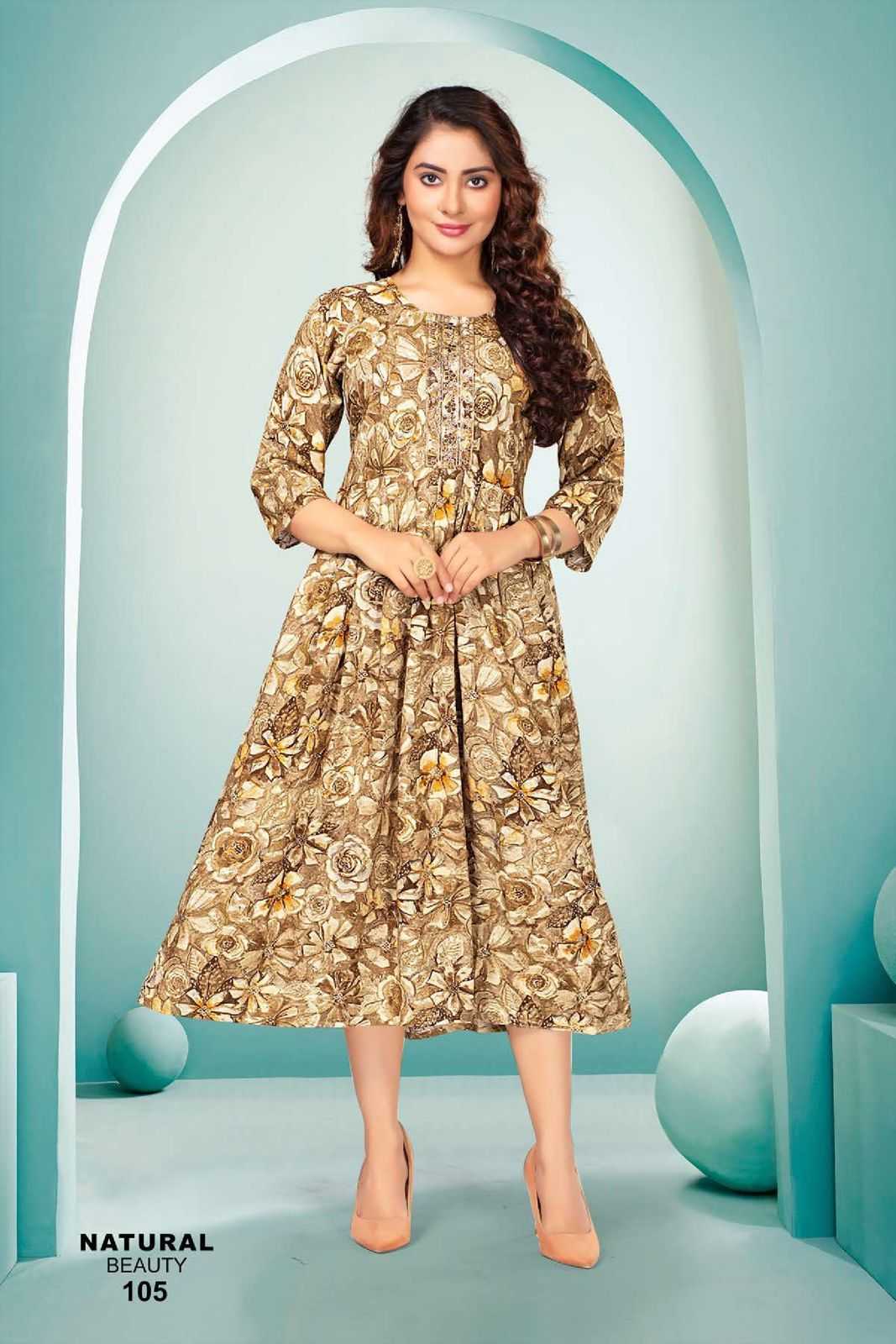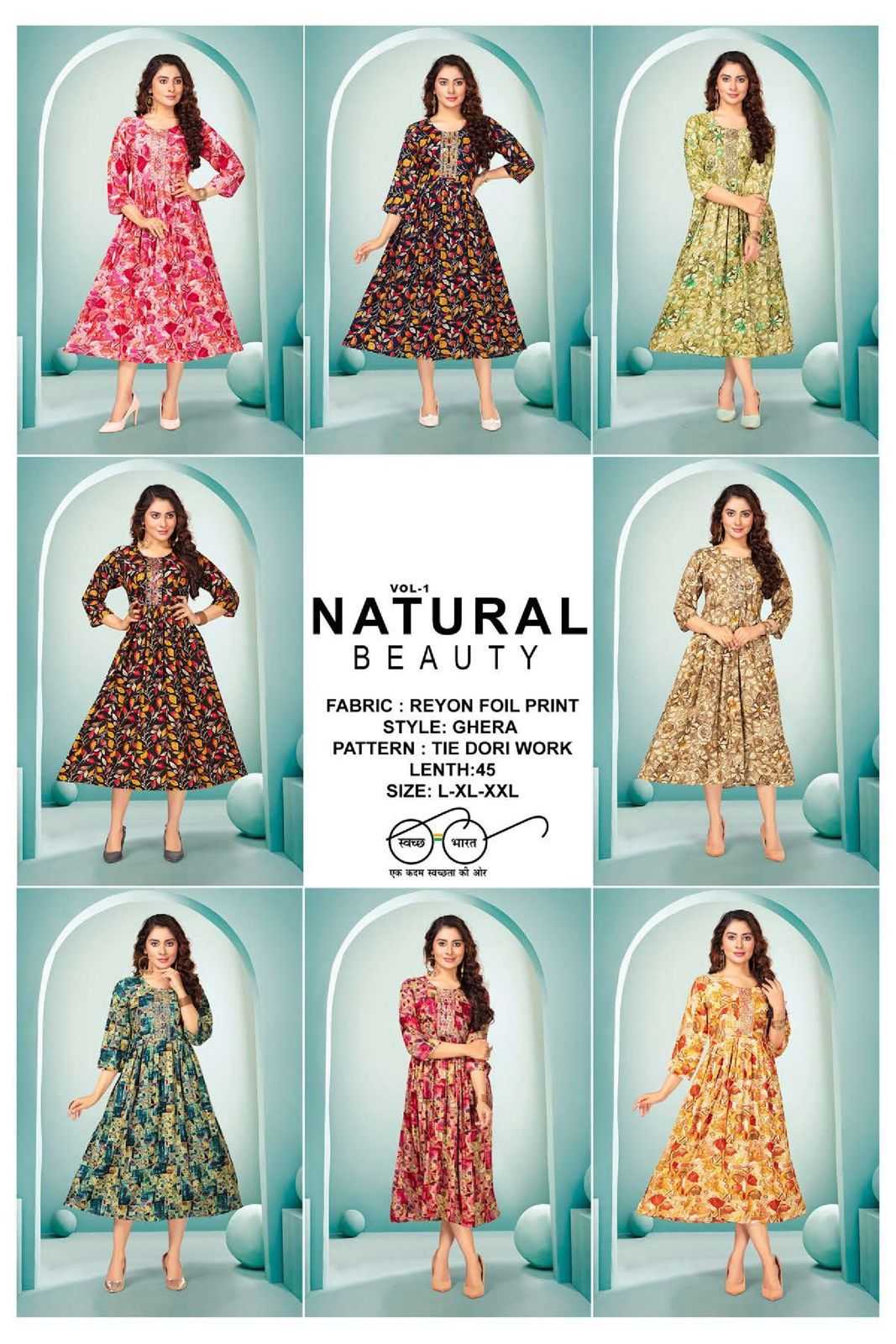 FASHION TALK NATURAL BEAUTY VOL.1 Heavy Rayon Foil Print KURTI CATALOG WHOLESALER BEST RATE