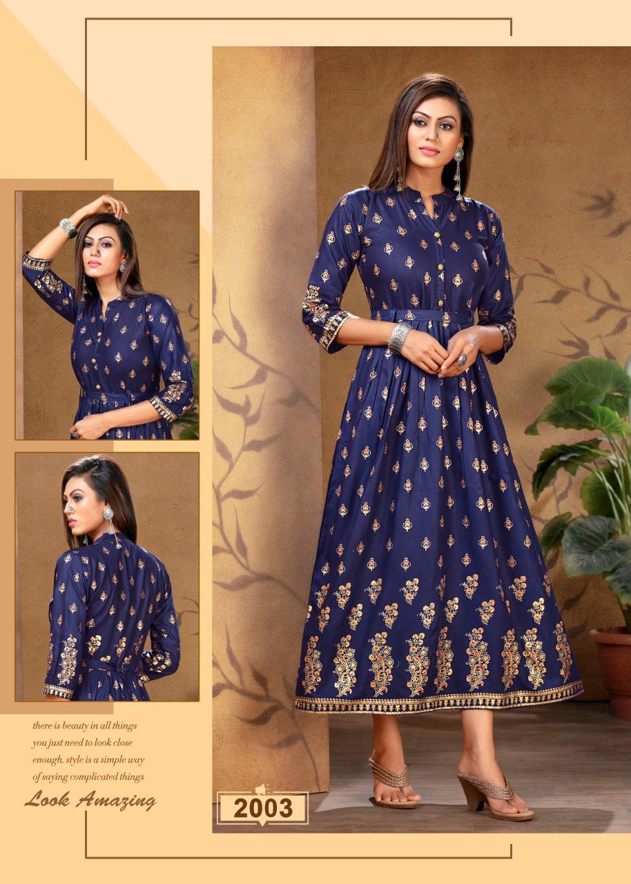 Catalogue Name:- FALAK ✨Details 👗Fabrics :- 👉Art Heavy RAYON 14 KG 💃🏻Style :- 👉Casual Silai Pattern new style with GOLD PRINT 🎗Size :- M(19) L(20) XL(21) XXL(22) 3XL(24) 🧶Length :- 52”+ ☣Designs : 8 Rate 525 Limited stock ..... |