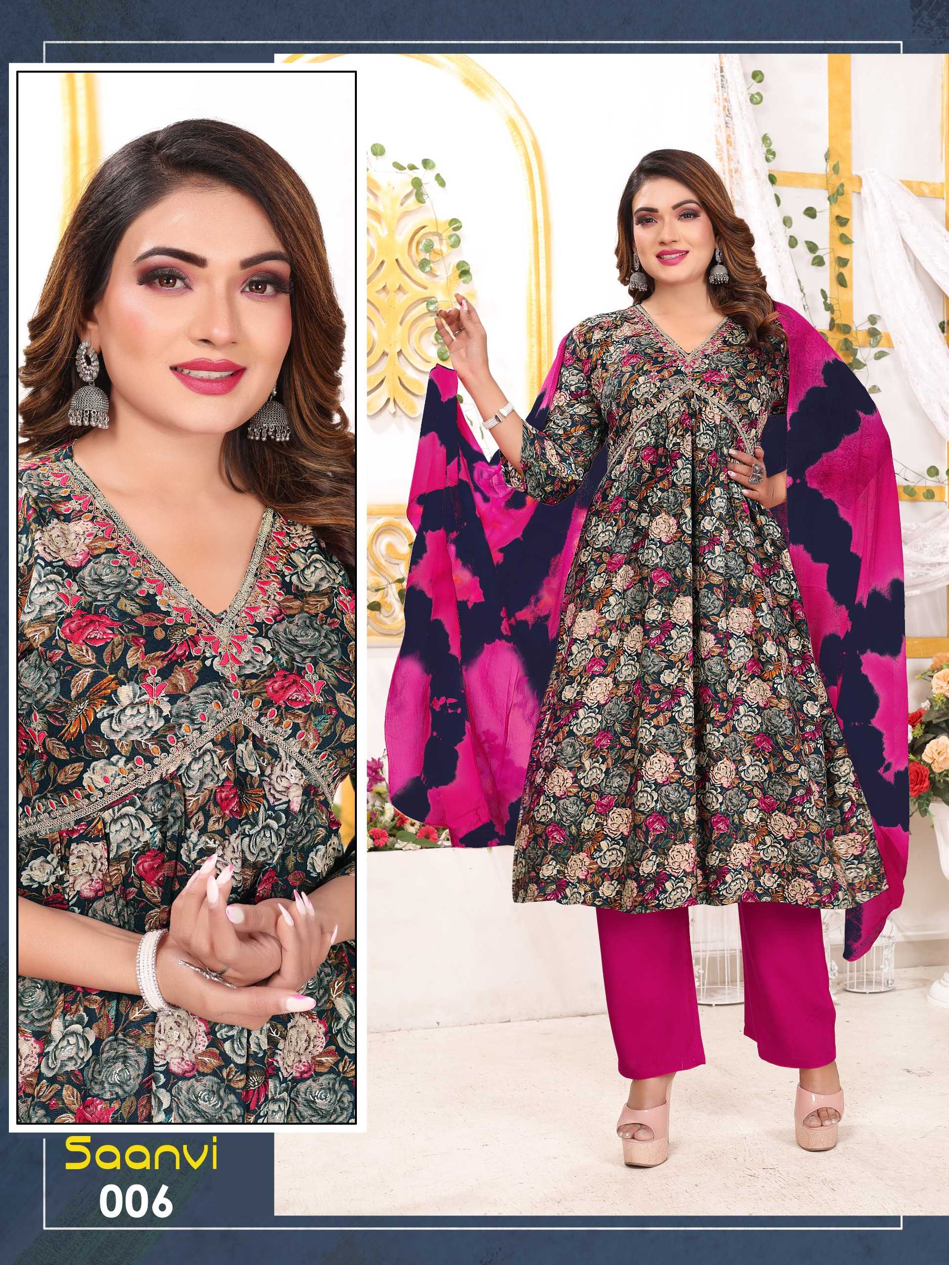 FASHION TALK SAANVI VOL.1 RAYON PRINT READYMADE SUIT CATALOG WHOLESALER BEST RATE