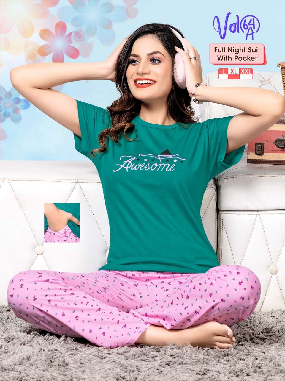 FASHION TALK VOL.64 A Heavy Shinker Hosiery Cotton Night Suits With Pocket CATALOG WHOLESALER BEST RATE