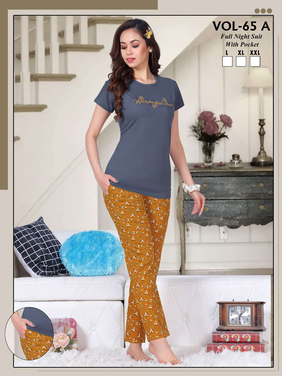FASHION TALK VOL.65 A Heavy Shinker Hosiery Cotton Night Suits With Pocket CATALOG WHOLESALER BEST RATE