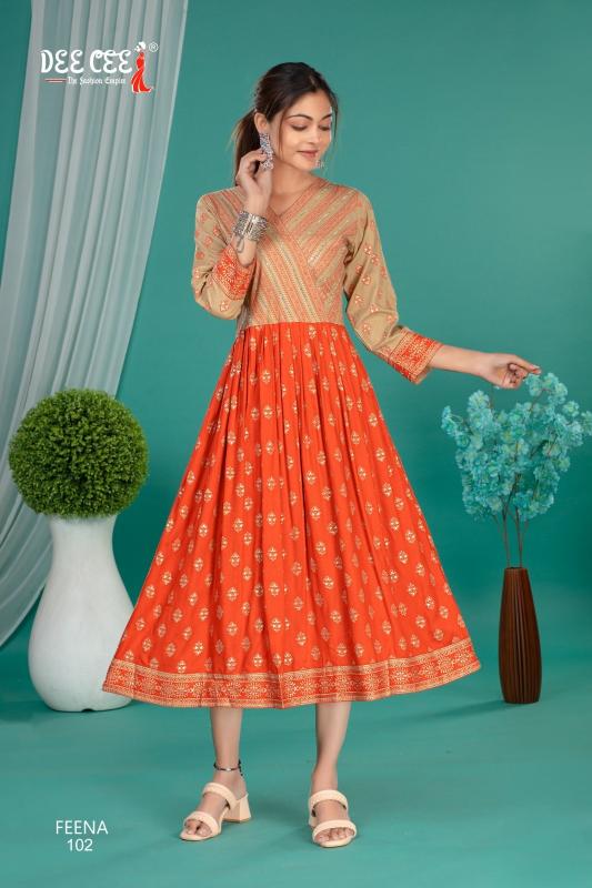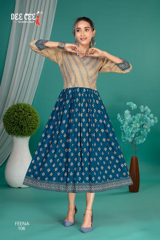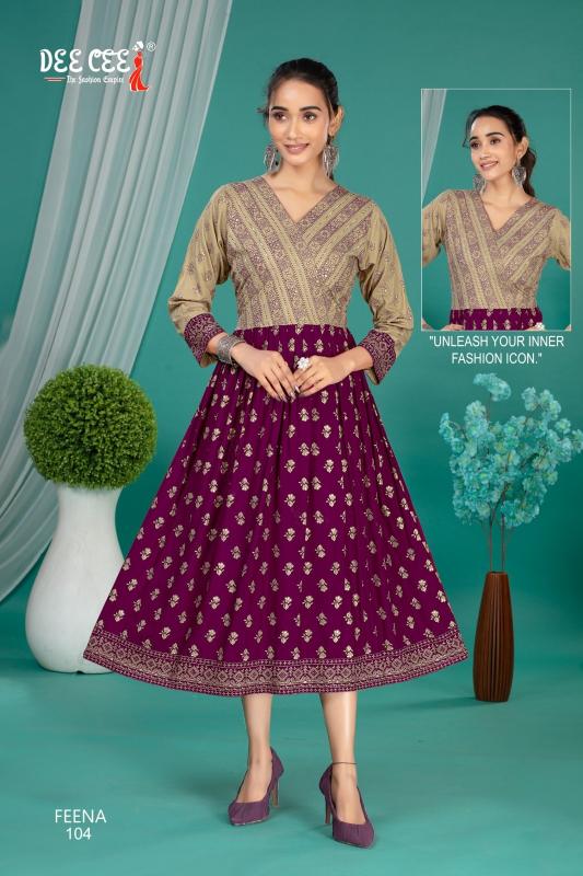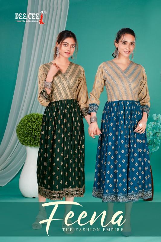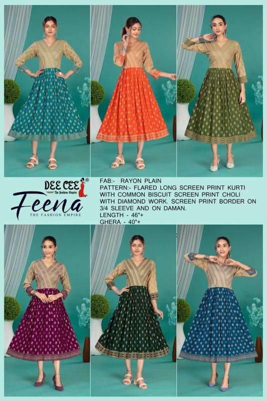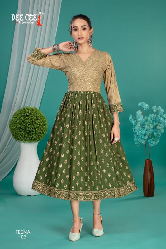feena by dee cee rayon readymade classic look big size long kurtis