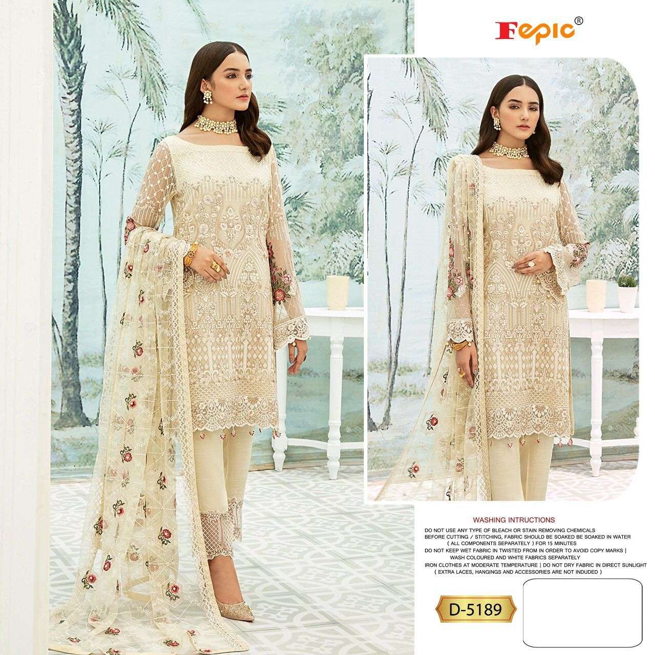 BRAND NAME:- FEPIC D NO:- D 5189 (4 pcs set) Top:- EMBROIDERED FAUX GEORGETTE RATE:-1259/- |