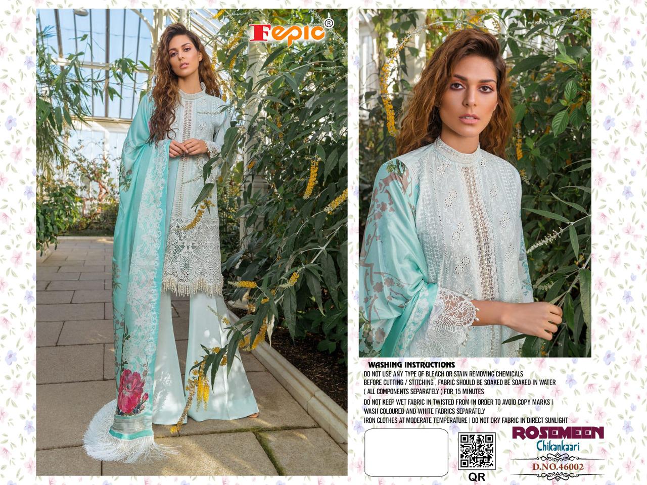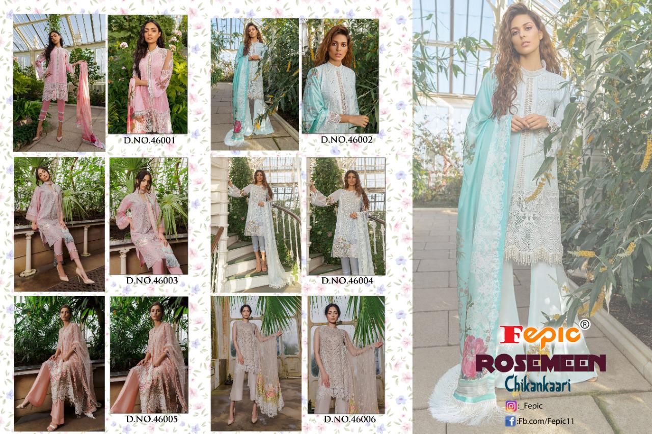 Fepic Rosemeen Chikankaari Cotton Pakistani Dress Materials Supplier