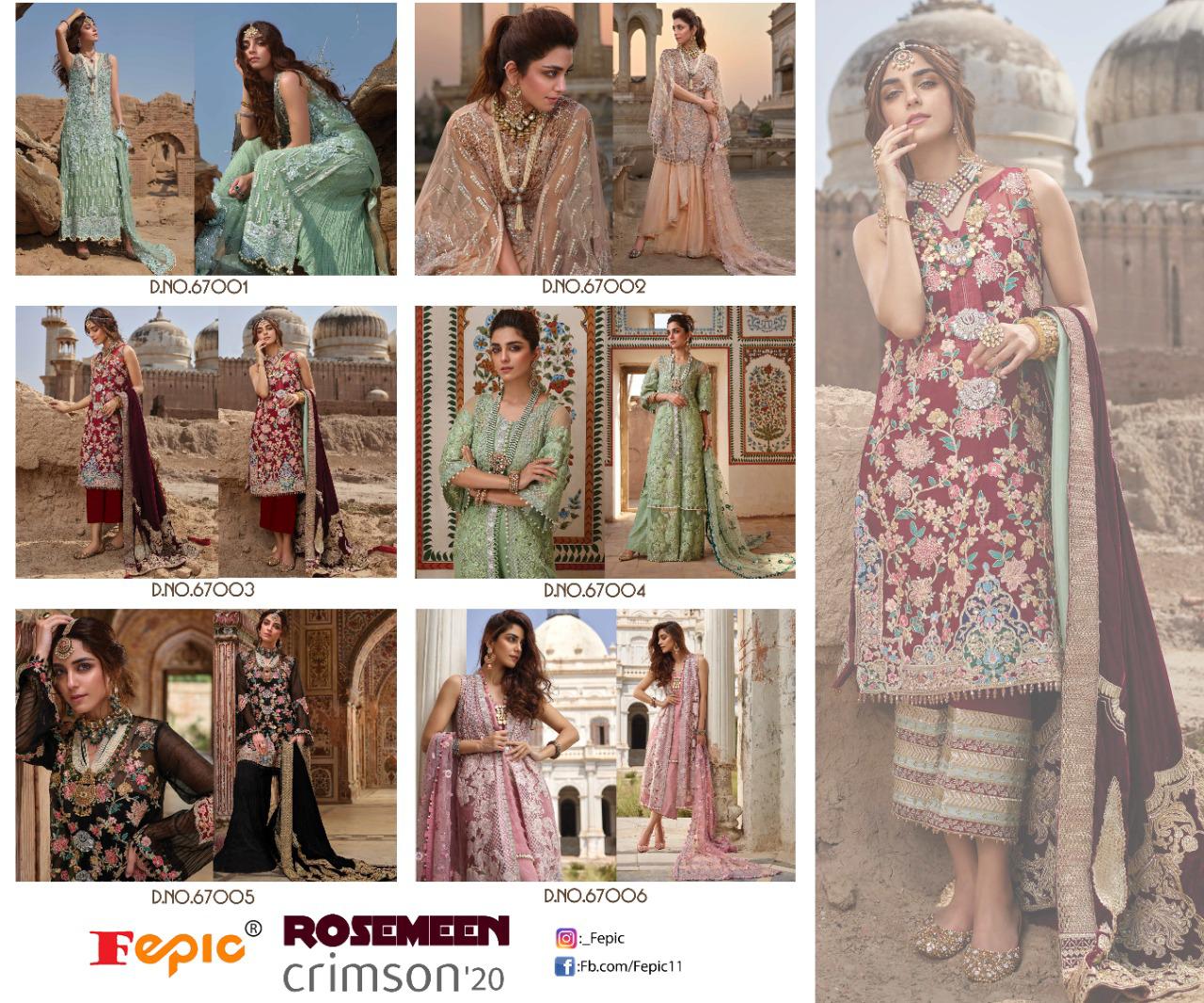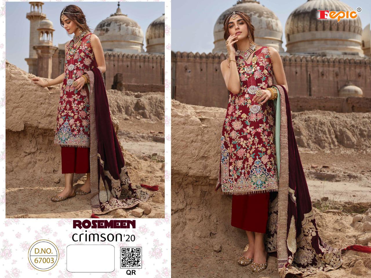 Fepic Rosemeen Crimson 20 Georgette Net Pakistani Salwar Kameez Wholesaler
