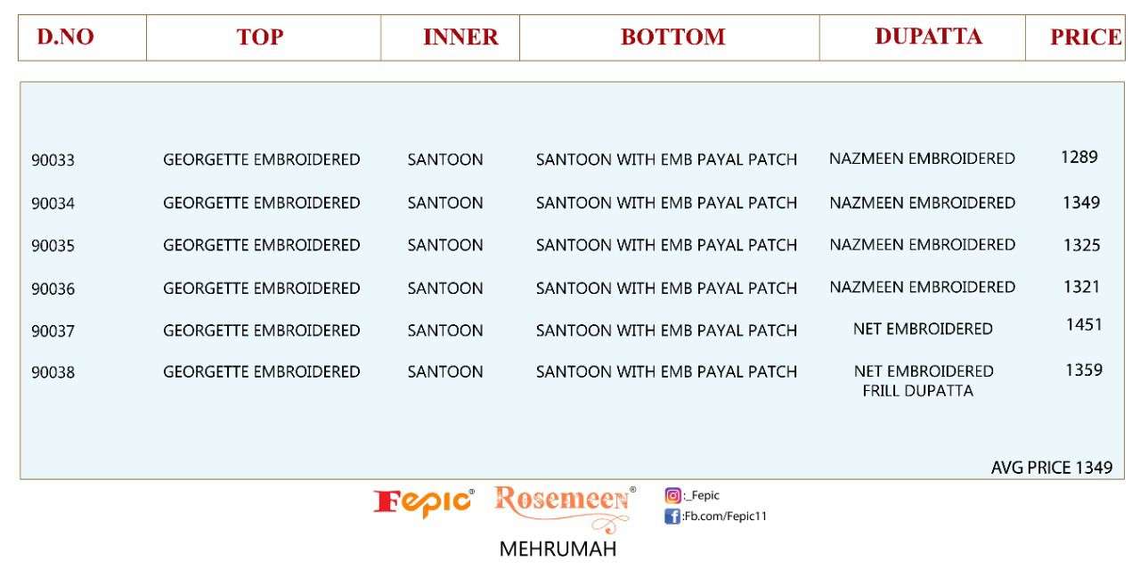 fepic rosemeen mehrumah georgette pakistani salwar kameez