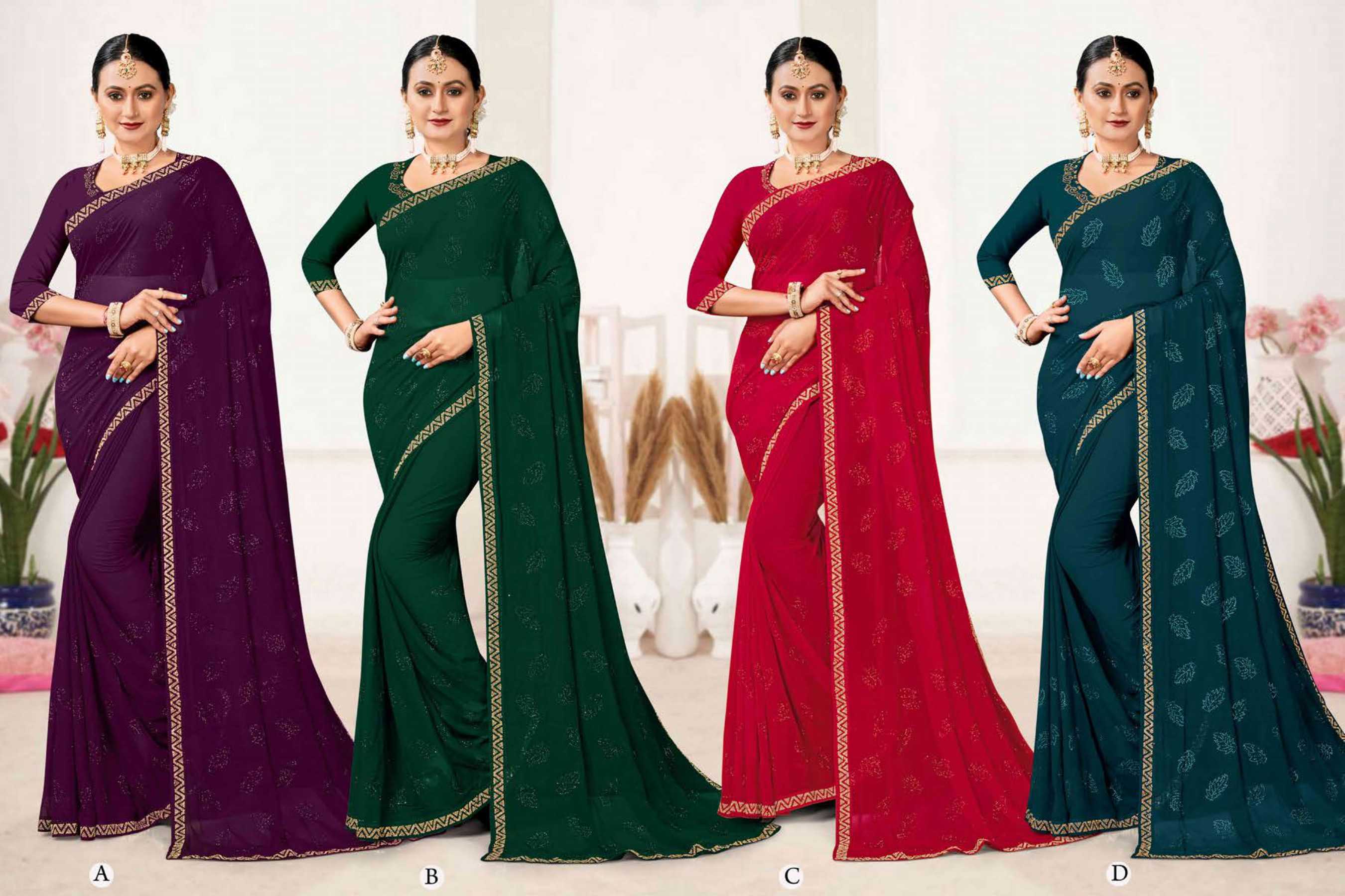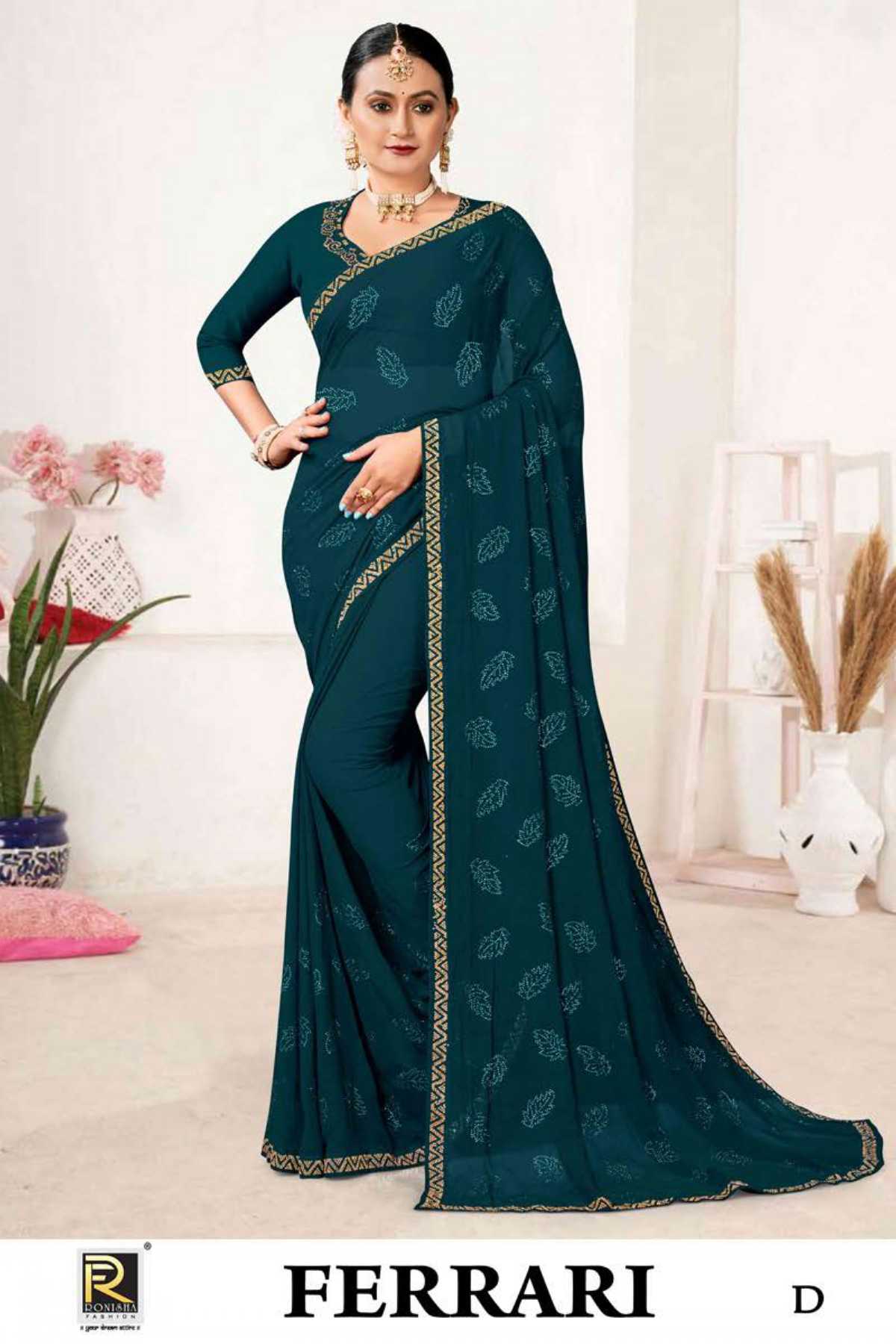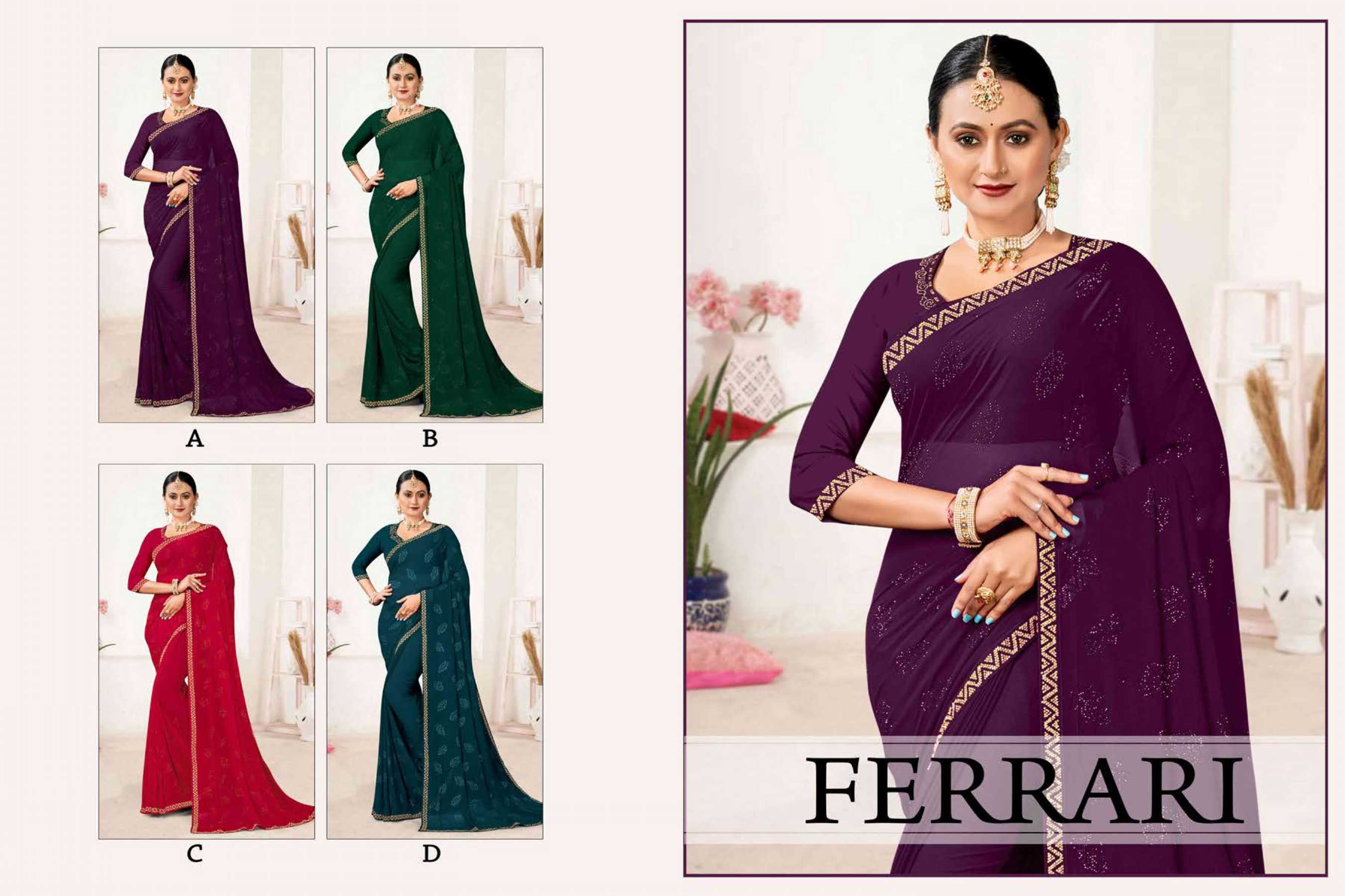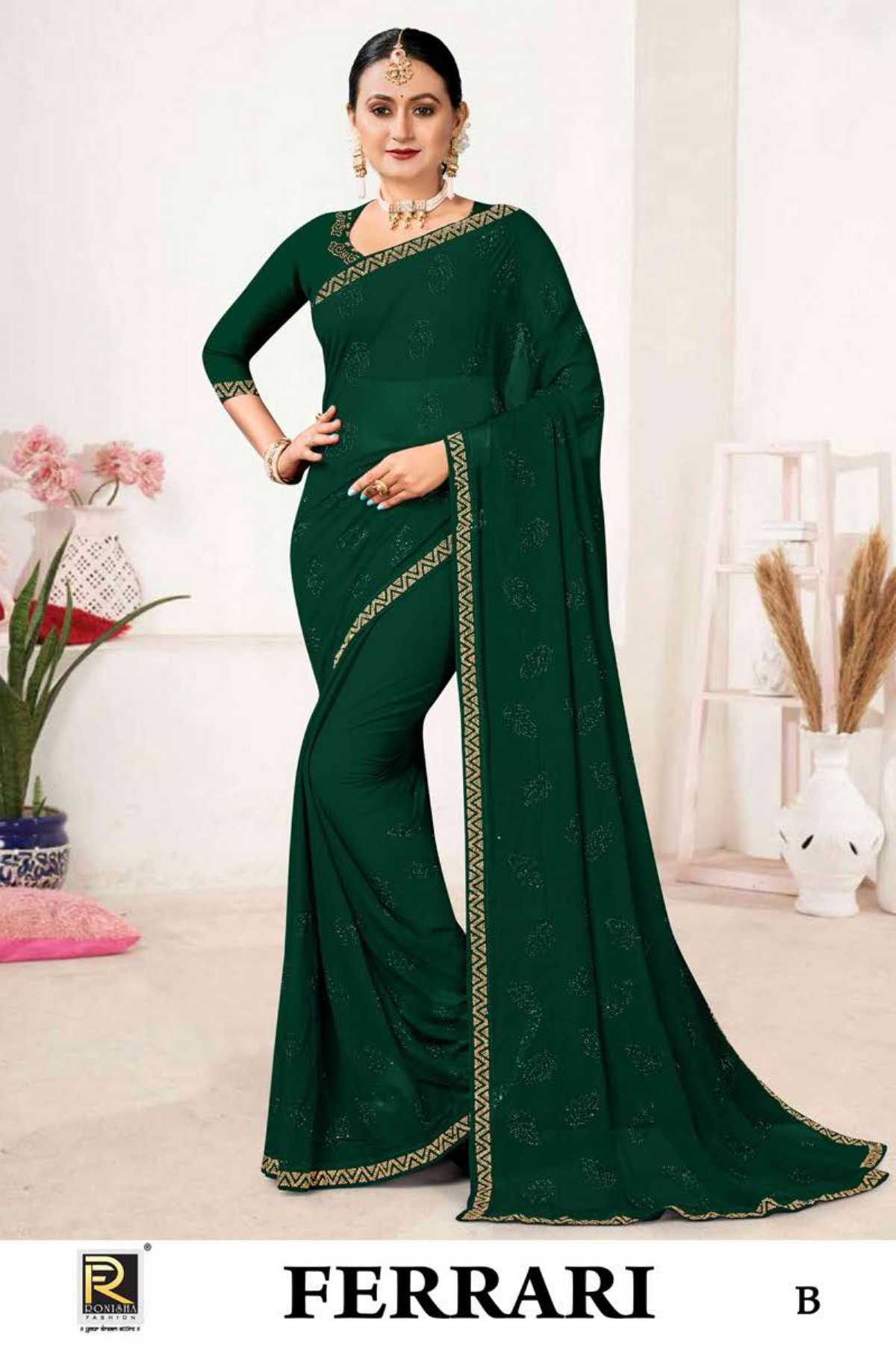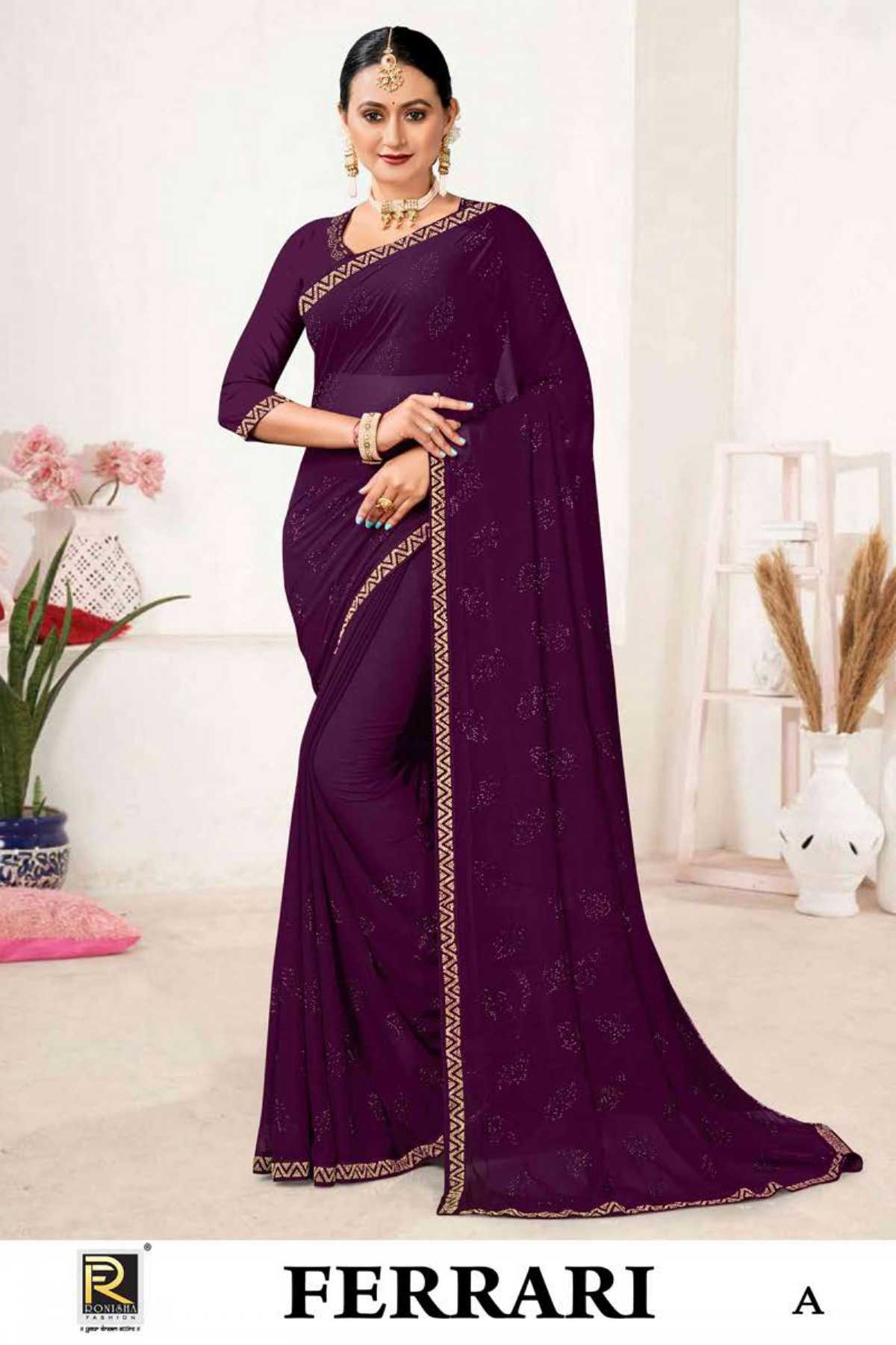 FERARI BY RANJNA SAREE FANCY FABRICS SIROSKI DIAMOND WORK FANCY SIROSKI BORDER SUPER HIT COLLECTION