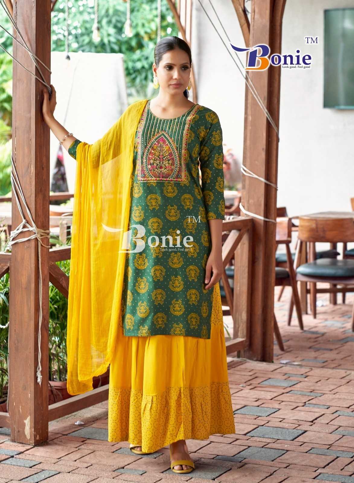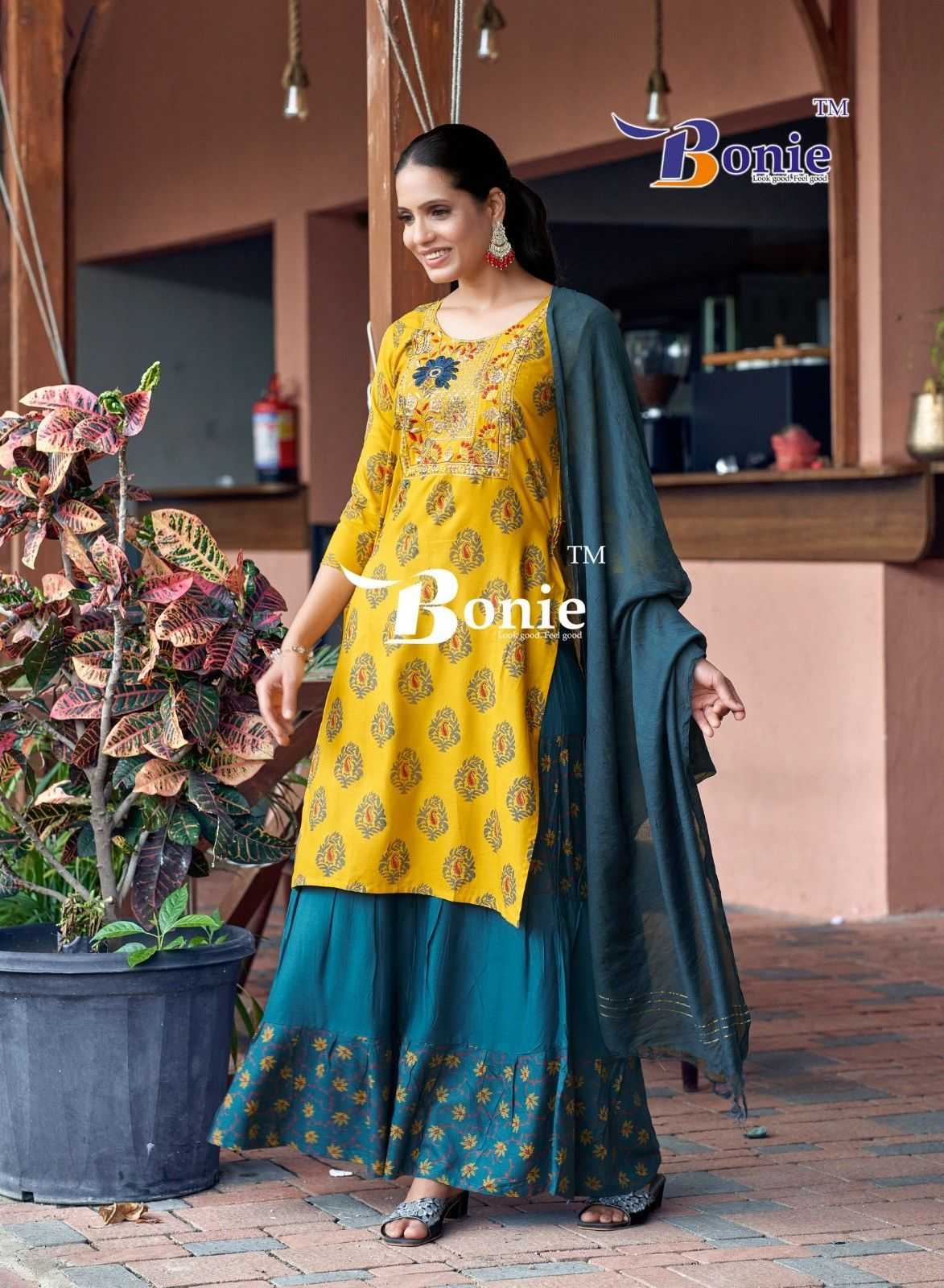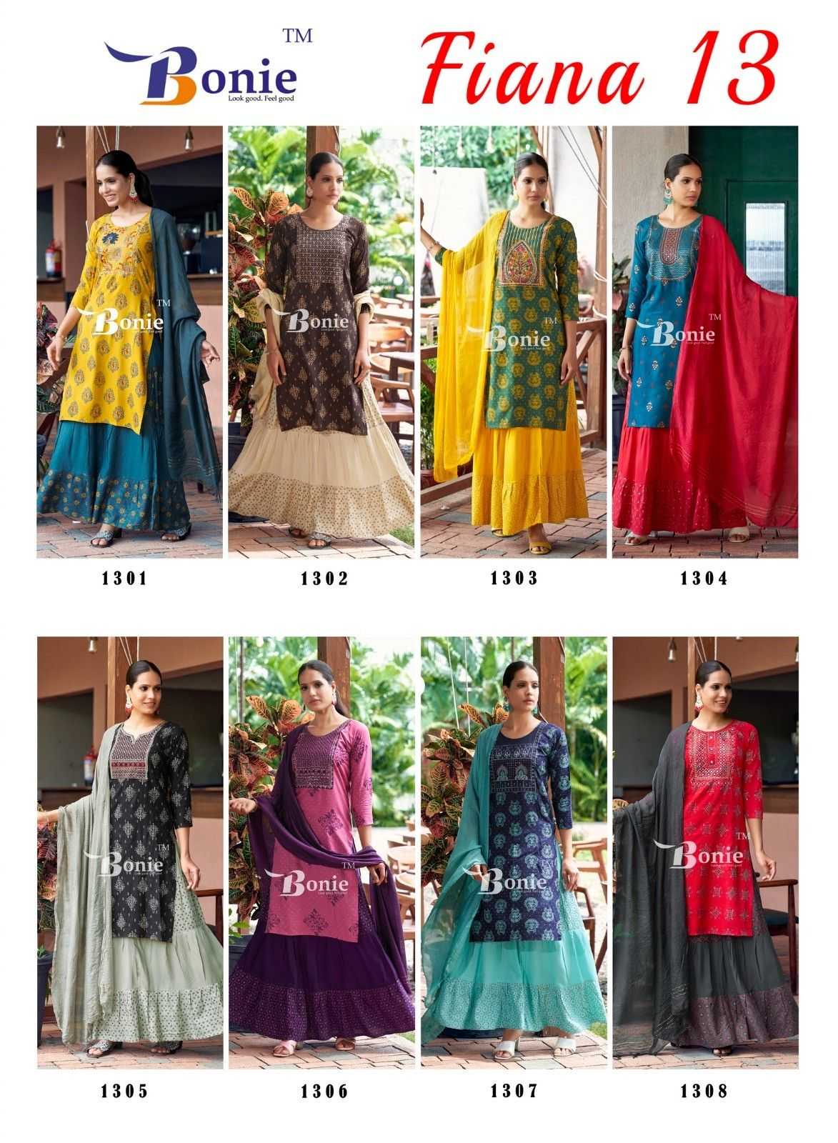 fiana vol 13 by bonie readymade rayon kurti skirt with dupatta