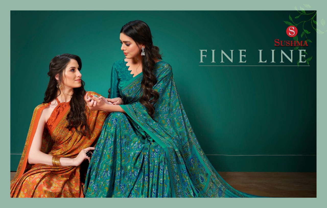Fine Line By Sushma Crape Printed Fancy Saree Online Supplier