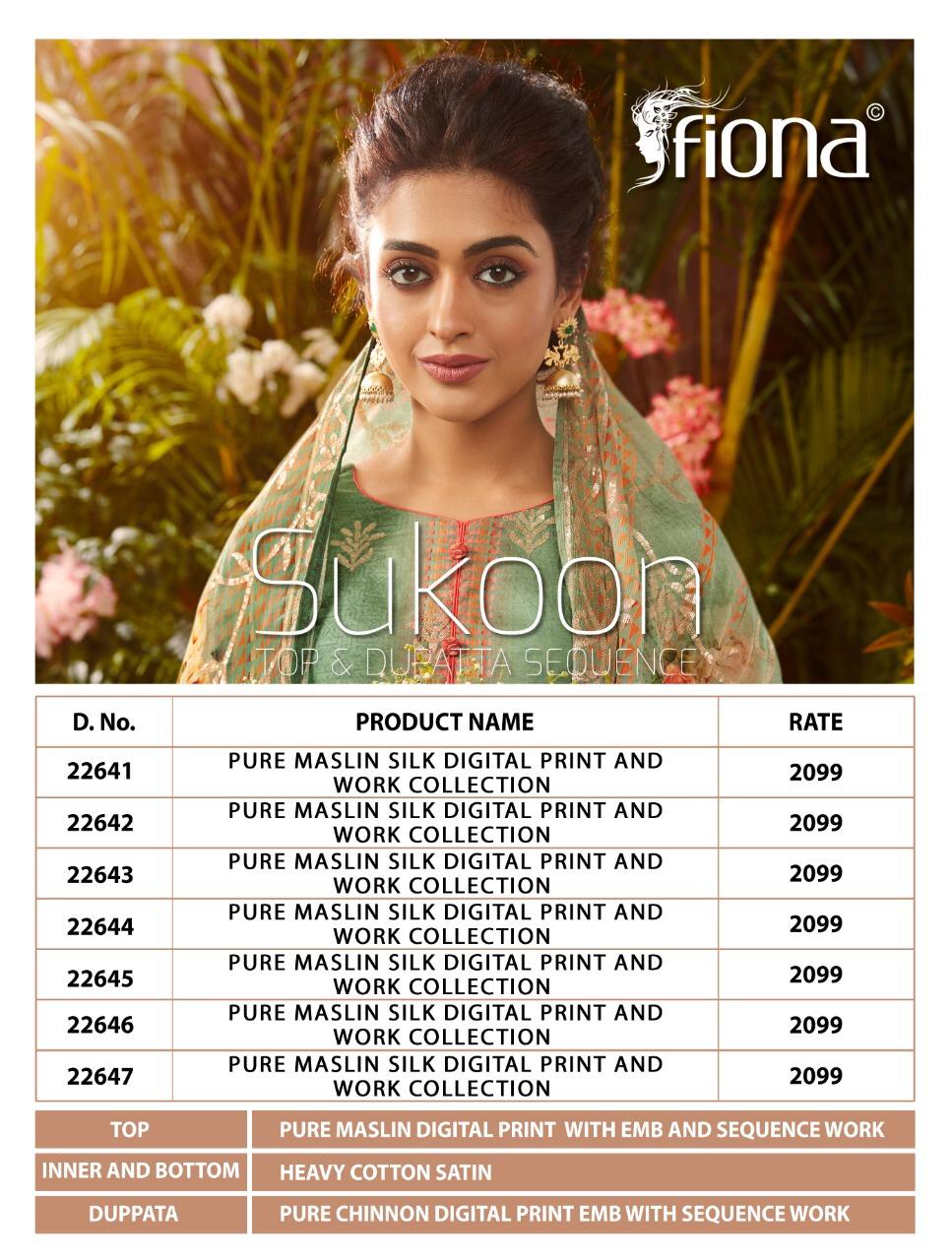 Brand - Fiona . Catlog Name - SUKOON . Rate -2099 per pcs . Set To Set . GST 5 Percent Extra. Delivery 4-5 DaysBrand - Fiona . Catlog Name - SUKOON . Rate -2099 per pcs . Set To Set . GST 5 Percent Extra. Delivery 4-5 Days |