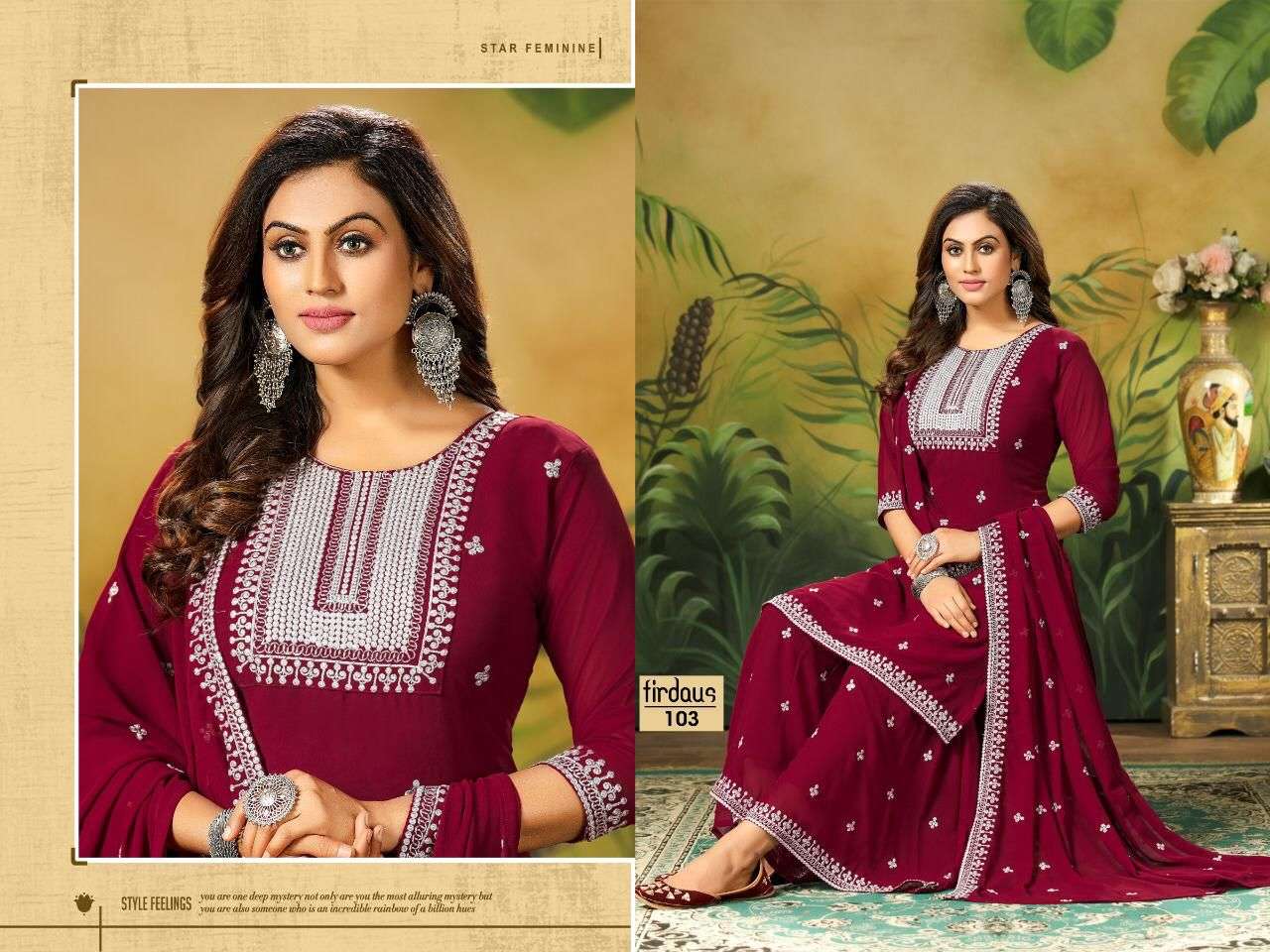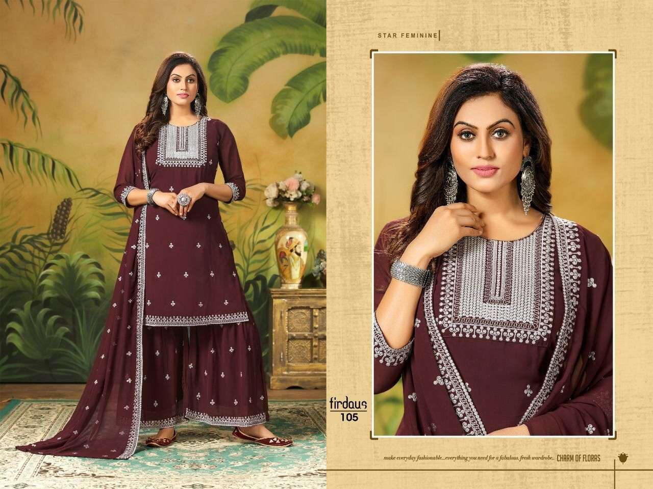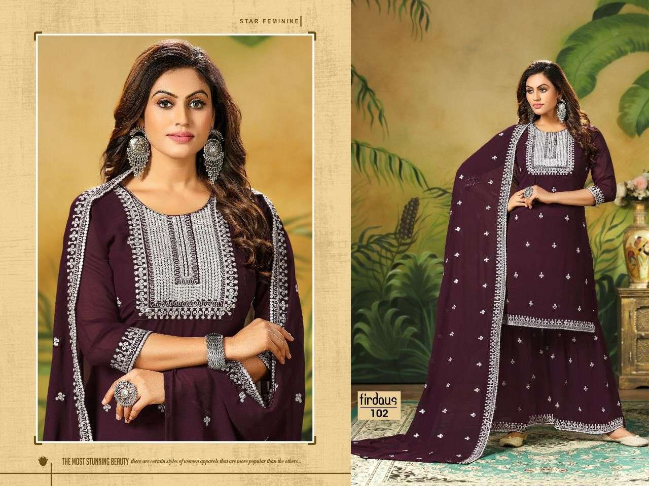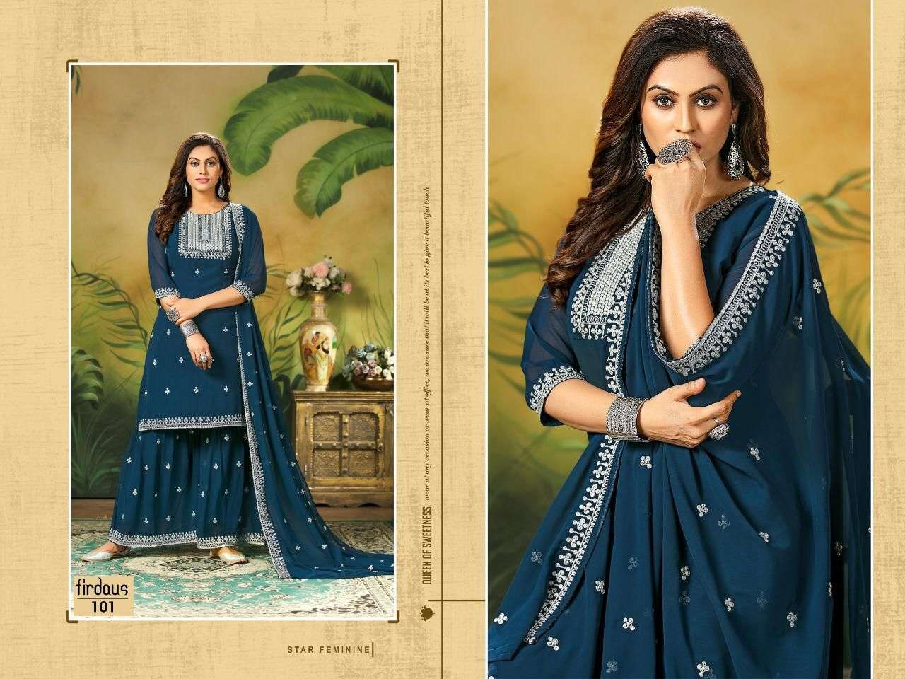 FIRDAUS HEAVY SHIFFON OP SHARARA DUPATTA WITH LINNING READYMADE SUIT CATALOG WHOLESALER BEST RATE