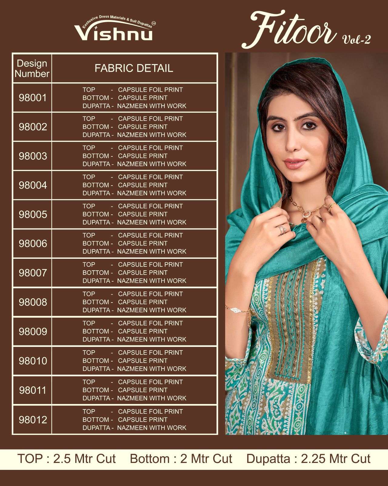 fitoor vol 2 by vishnu impex capsule foil print dress material