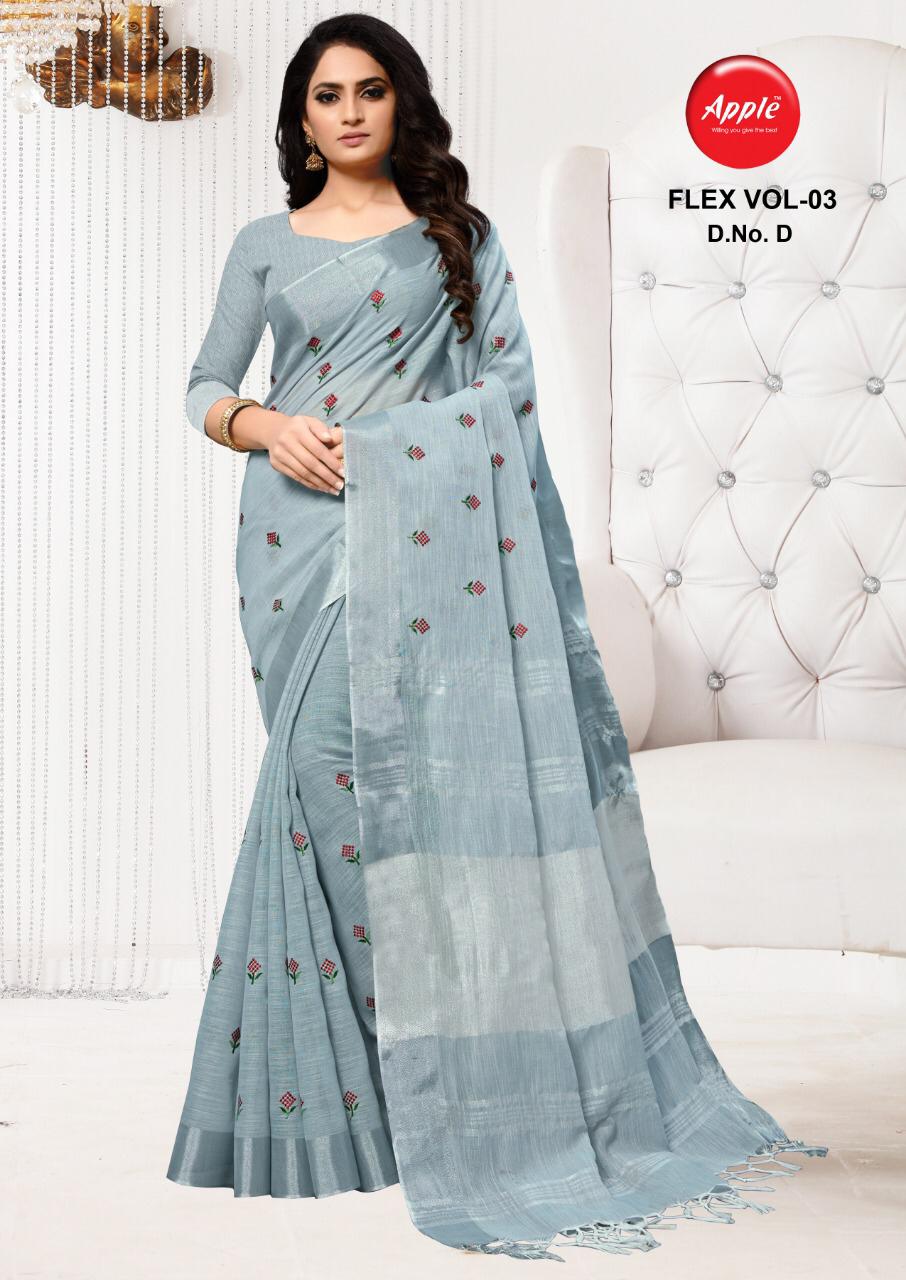 Flax Vol 3 By Apple Linen Silk Embroidery Saree Online Store
