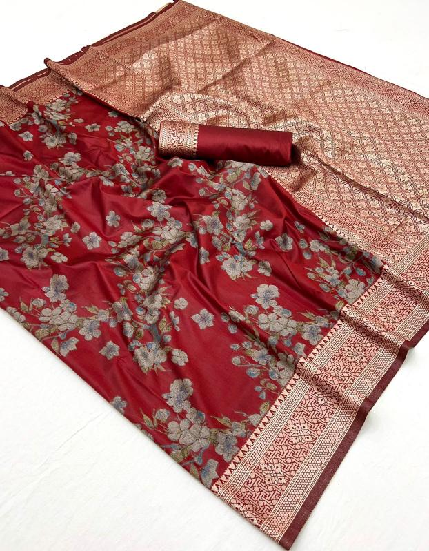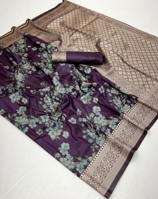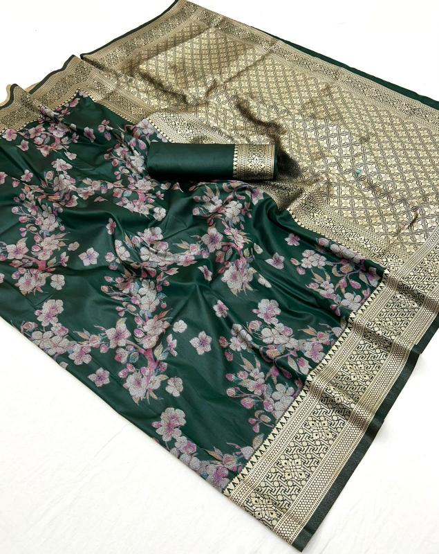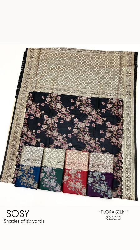 Brand : Sosy Catalog Name -Flora Silk Saree Fabric : Handloom Silk With Digital Print With Zari Weaving Border & Pallu Blouse Fabric : Handloom Silk Occasion : Party Wear, Festival Wear |