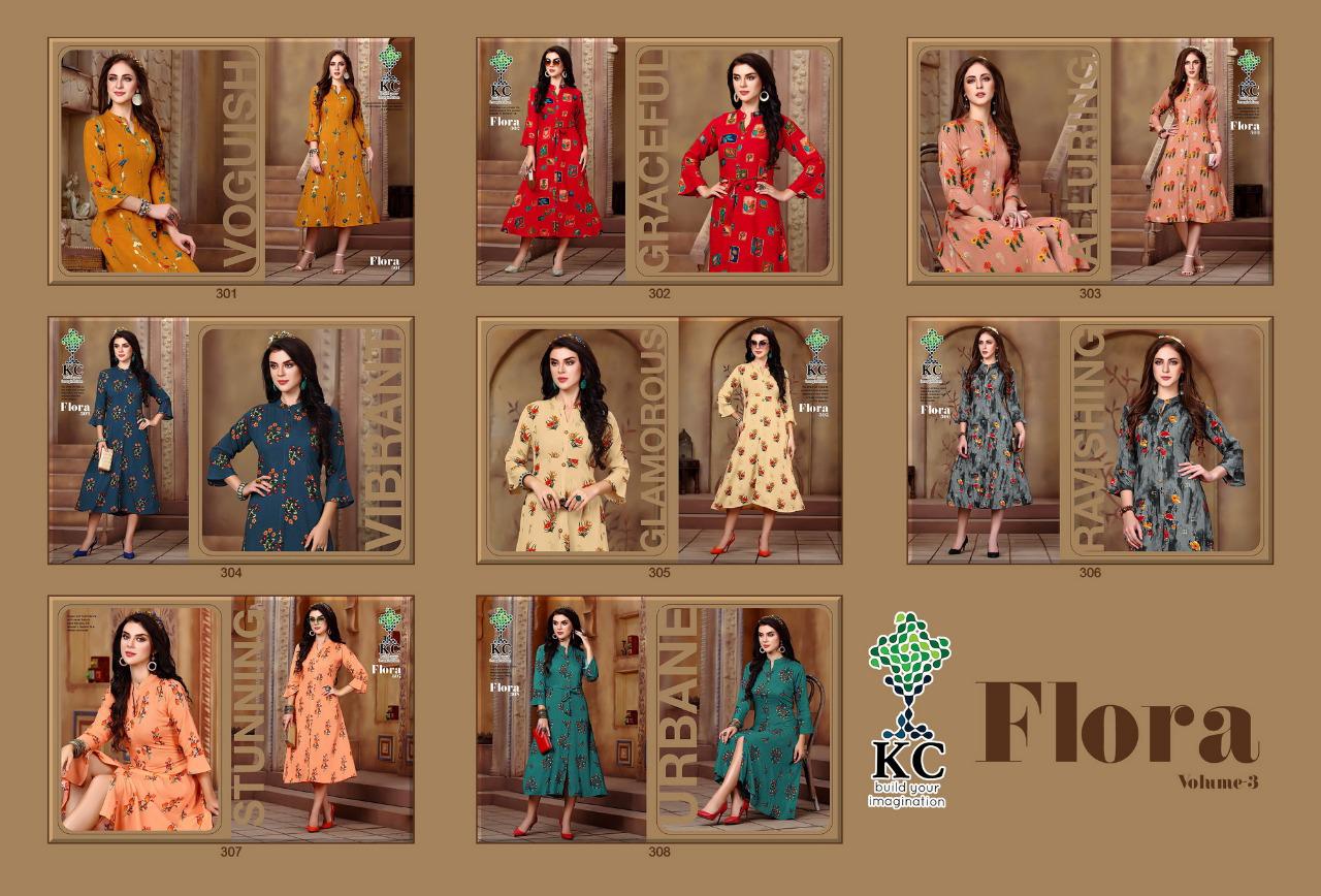 Flora Vol 3 By Kc Rayon Designer Gown Foil Printed Collection