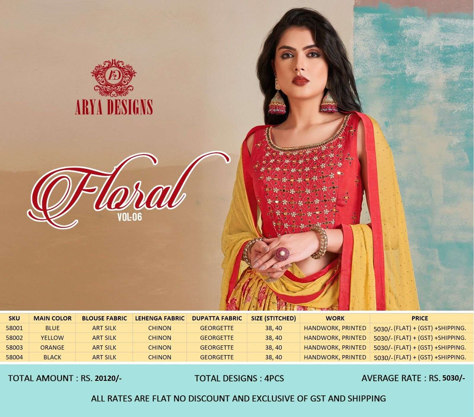floral vol 6 by arya designer handwork beautiful printed readymade lehenga choli