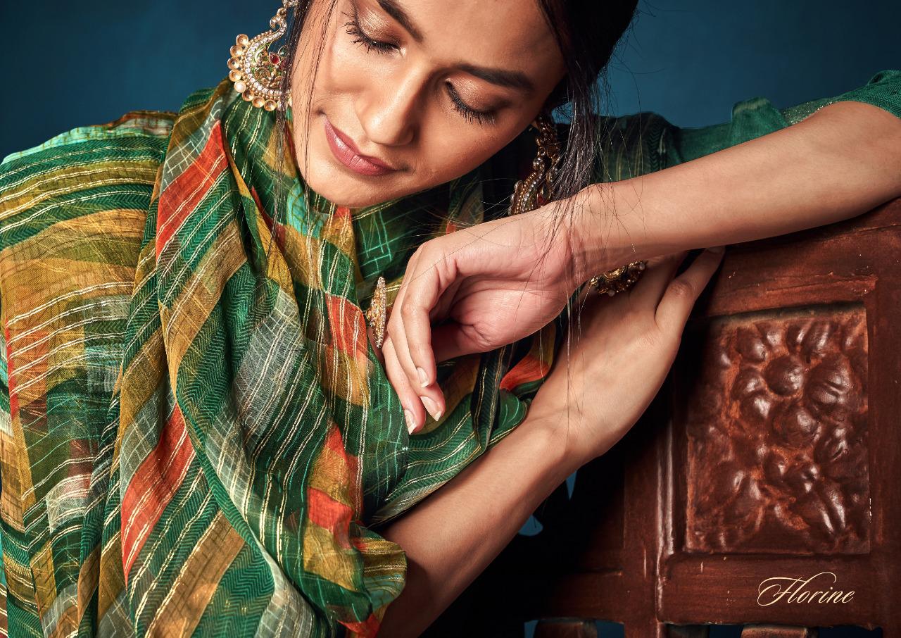 SARGAM PRINTS Presents **FLORINE** Fabric Details Top: PURE ZAM FOIL PRINT WITH SHISHA KHATLI WORK Bottom :* SOFT COTTON Dupatta: PURE BEMBERG PRINT Designs: 8 PCS Rate: 795₹ HSN CODE: 5407 |