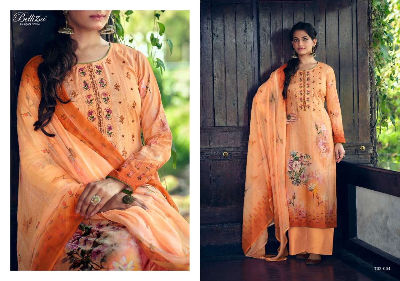 Belliza Designer Studio Presents Latest Collection Launched on 09-03-2021. Presenting Beautiful collection of 6 PCS with Unstitched .
