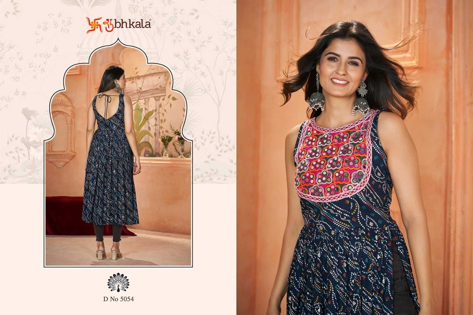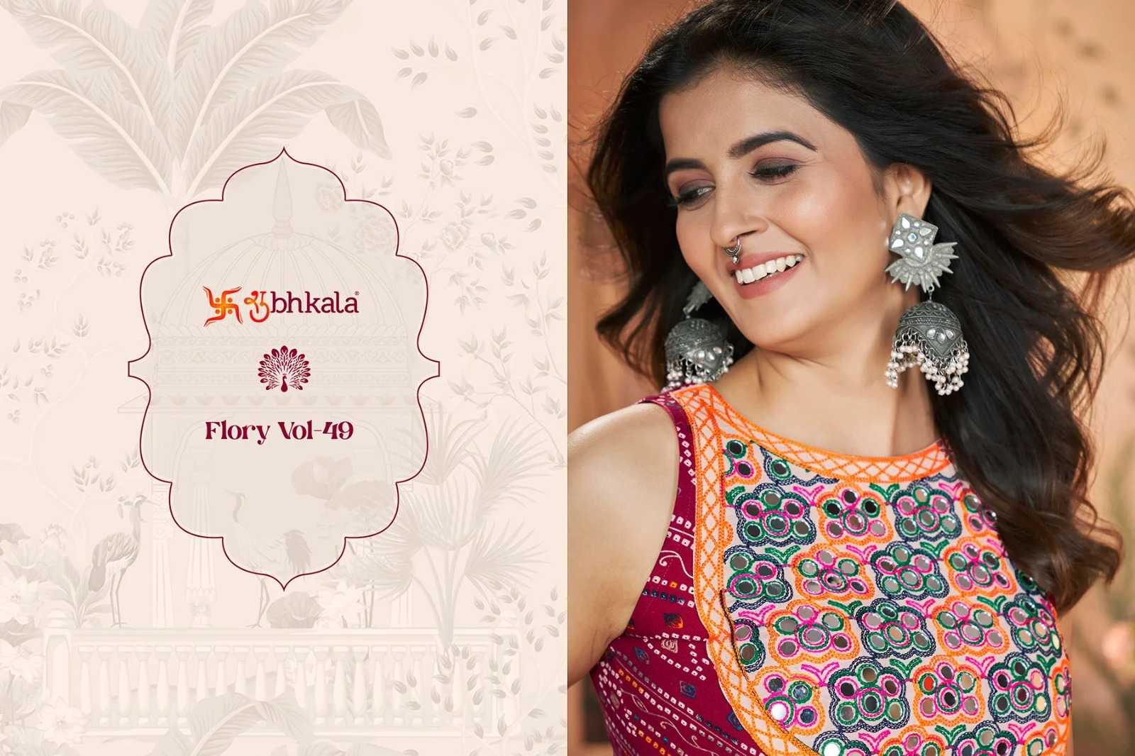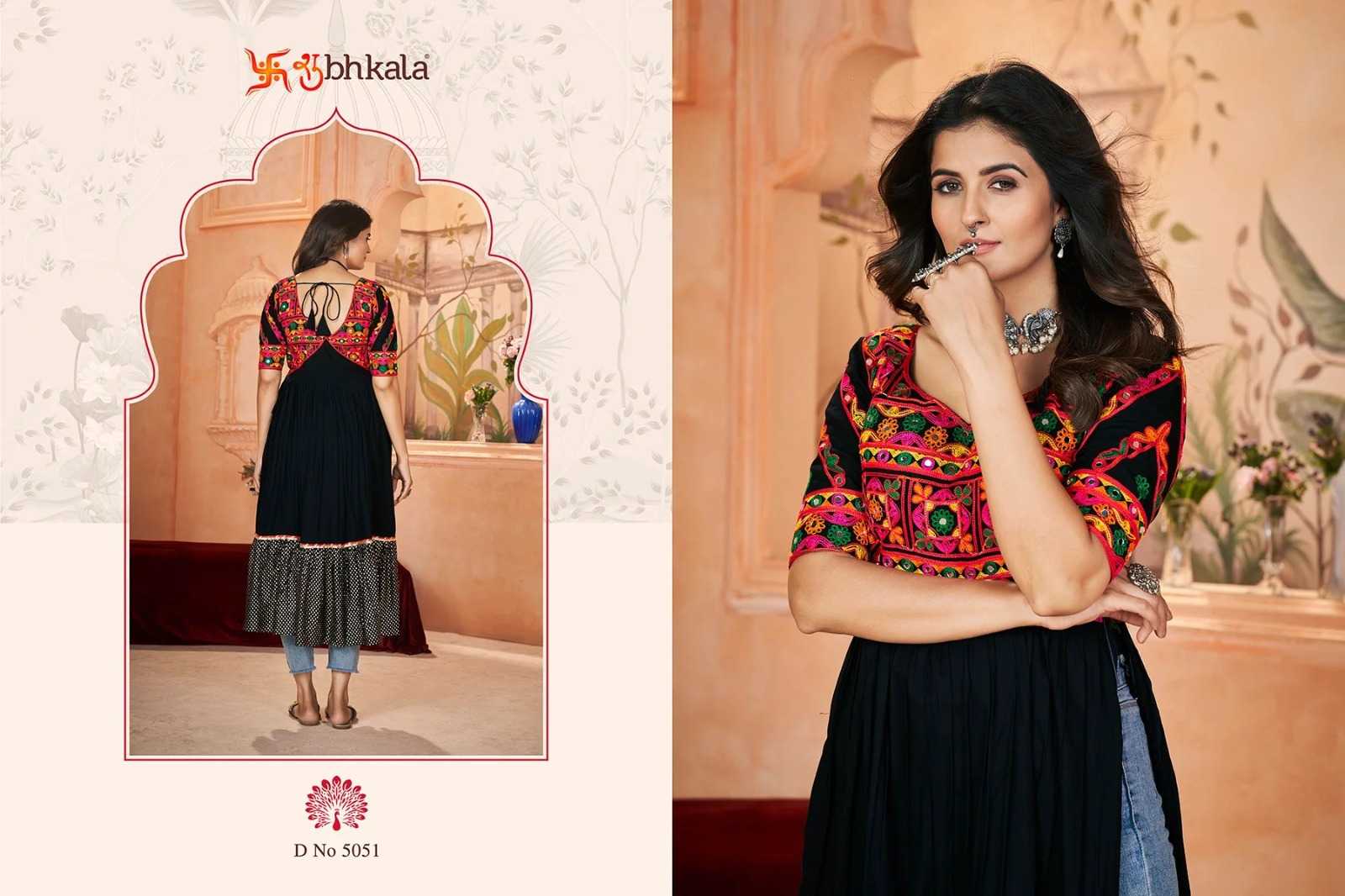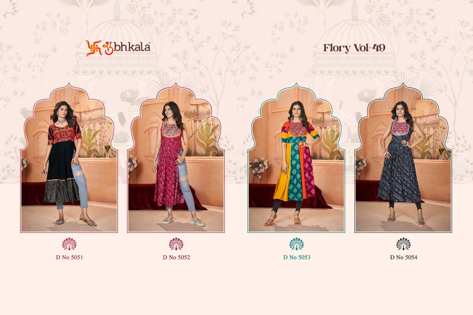 flory vol 49 by shubh kala navratri special full stitch embroidered long kurti 2024