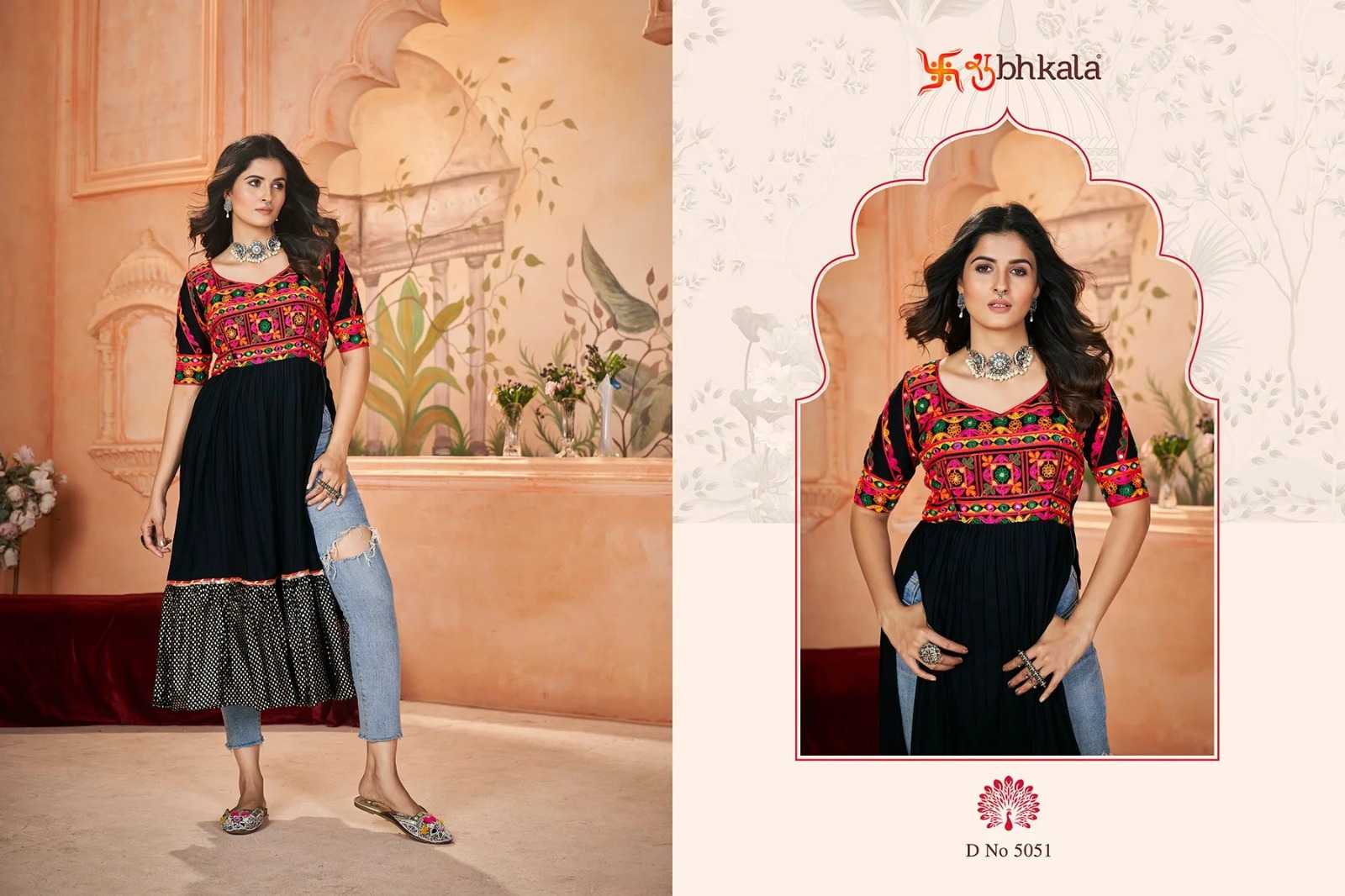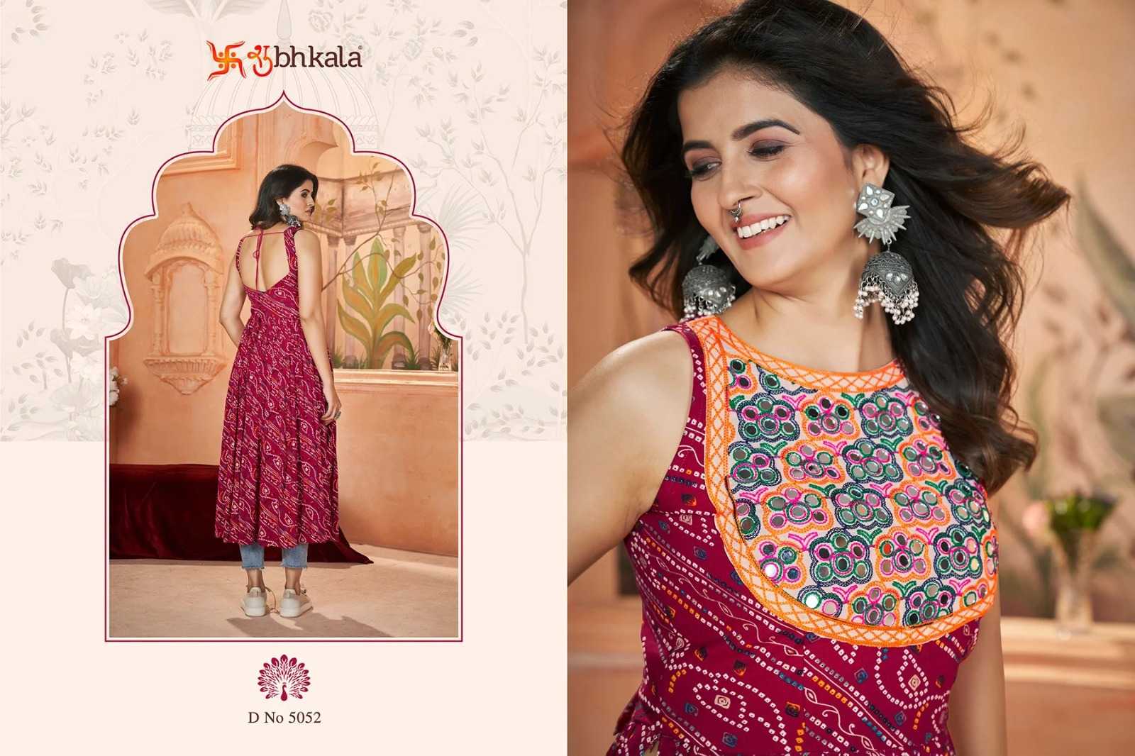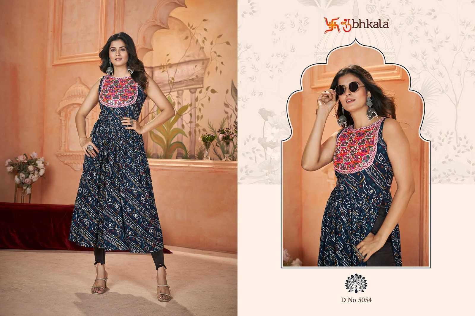 flory vol 49 by shubh kala navratri special full stitch embroidered long kurti 2024