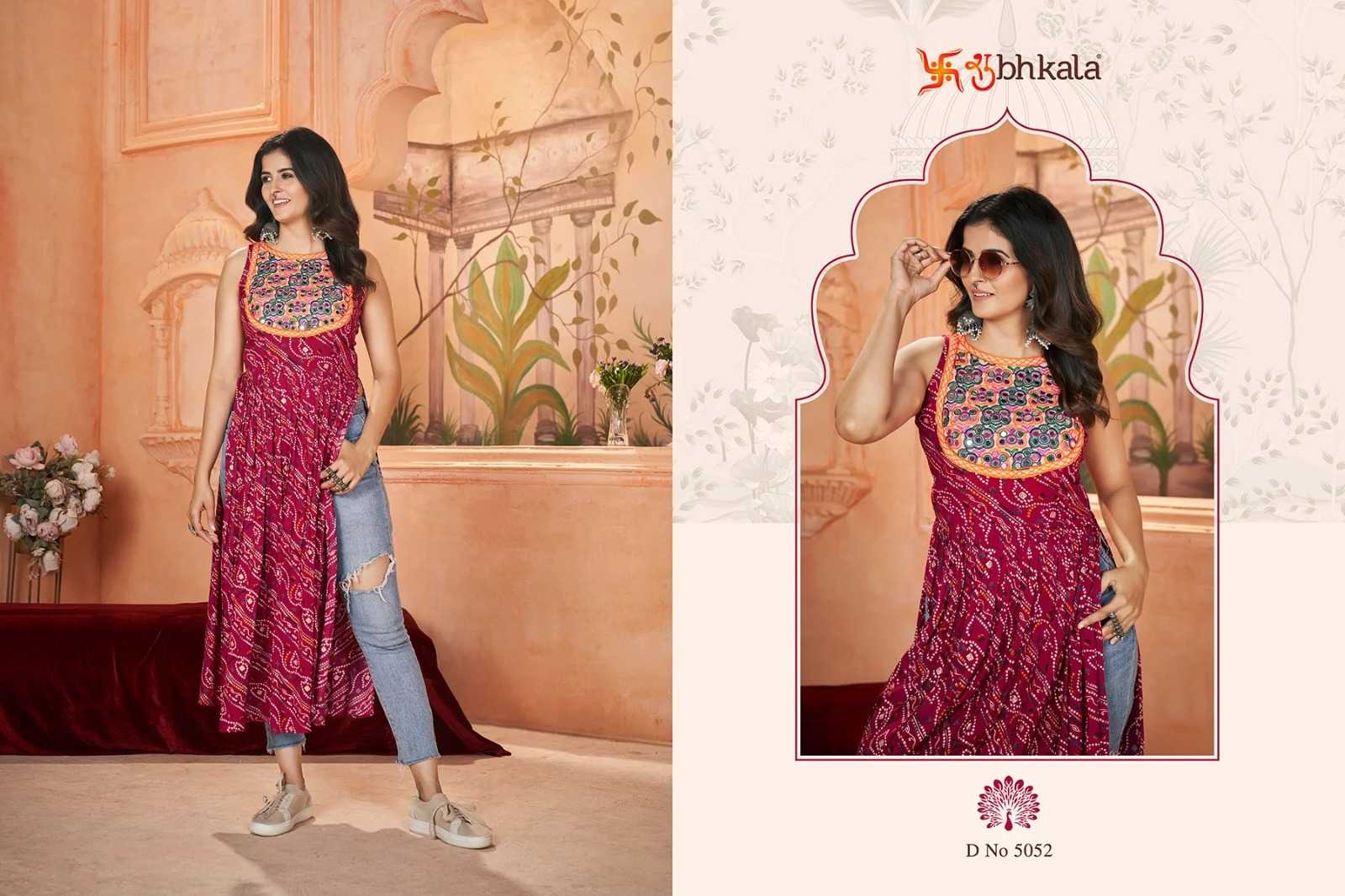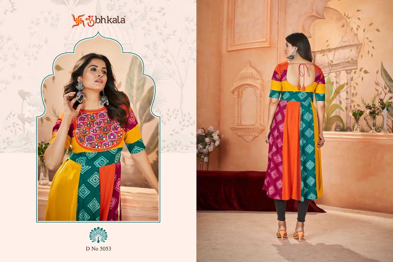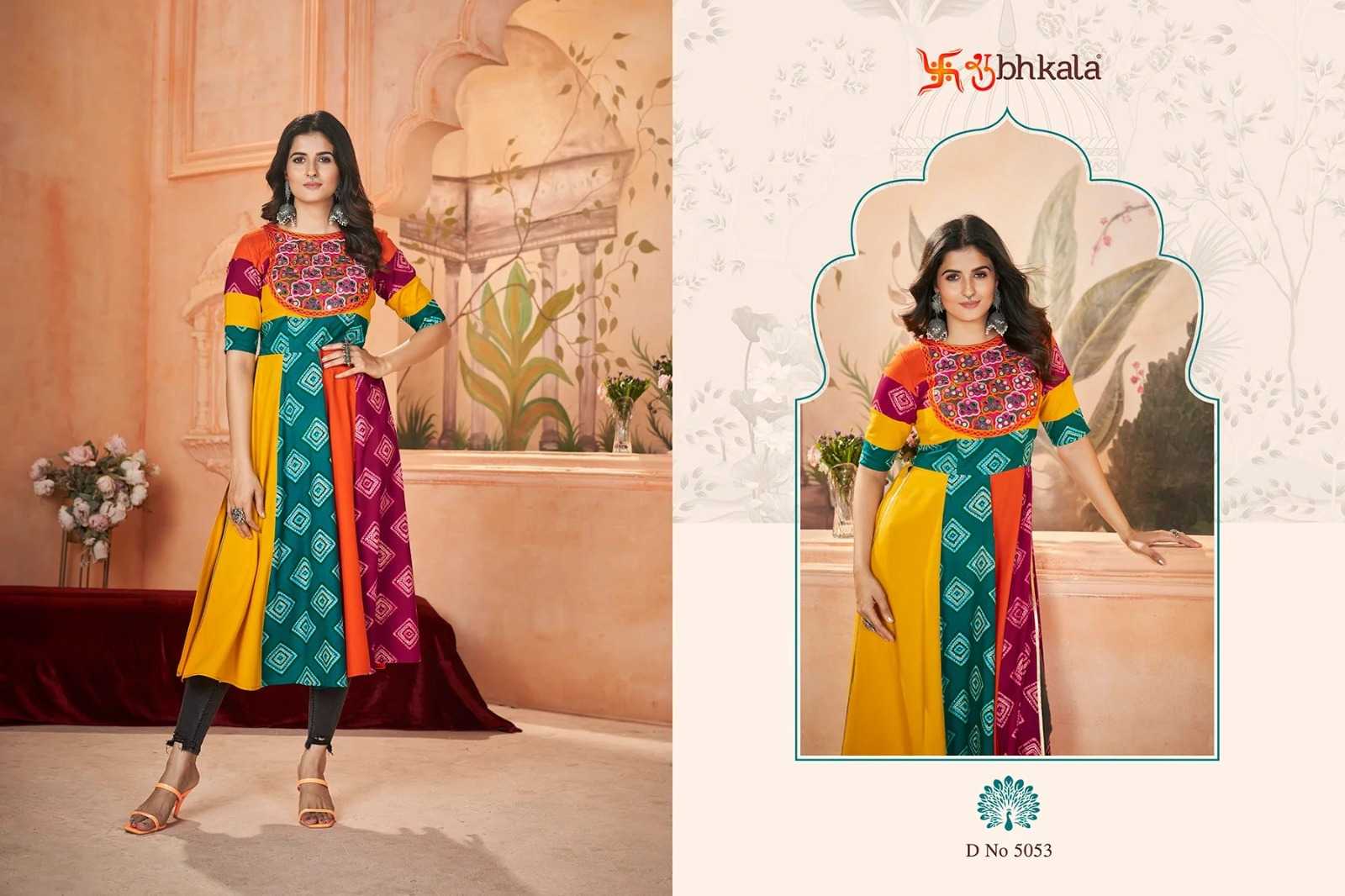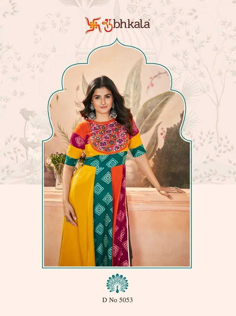 flory vol 49 by shubh kala navratri special full stitch embroidered long kurti 2024
