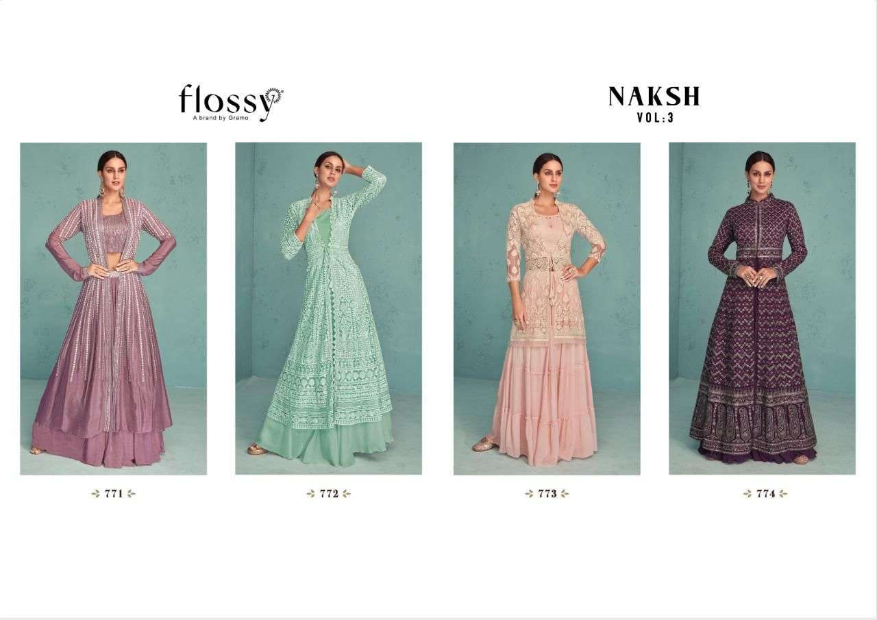 flossy naksh vol 3 party wear readymade long dresses outfit