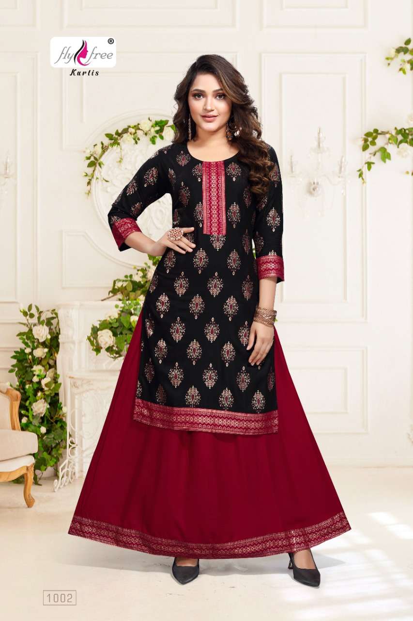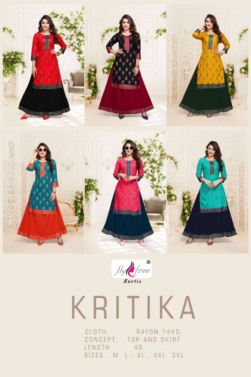 Dear Customers, Welcome to FLY FREE (KURTI) .., We are introducing FLY FREE 'S new catalogue 📕Catalogue:- KRITIKA 👗Cloth :- RAYON ✅Concept :- TOP AND SKIRT Length :- *40”*MINIMUM Size:- M L XL 2XL 3XL AVAILABLE PRICE 550/- 5% GST EXTRA 🚛 : Dispatch :- READY DELIVERY |