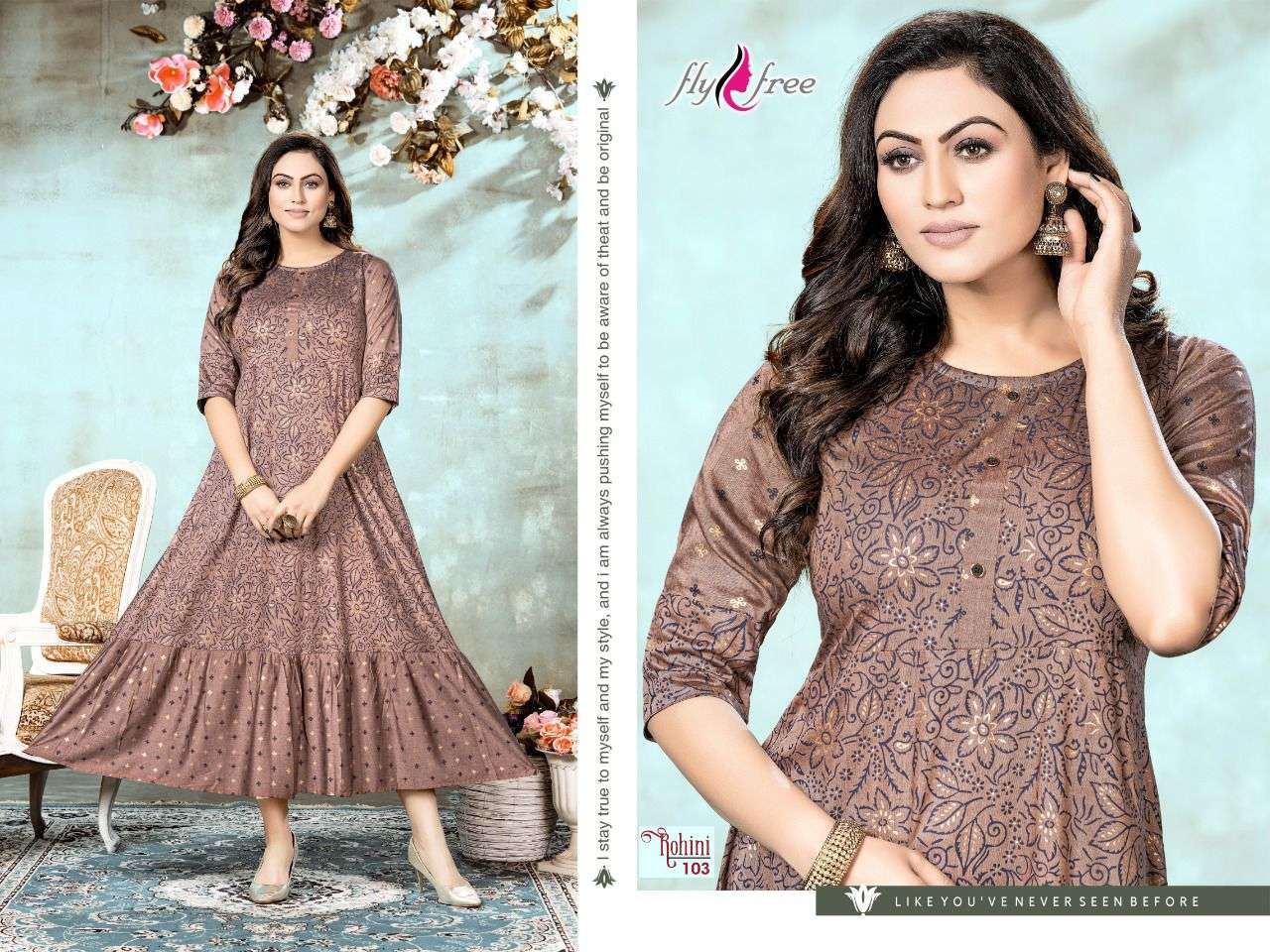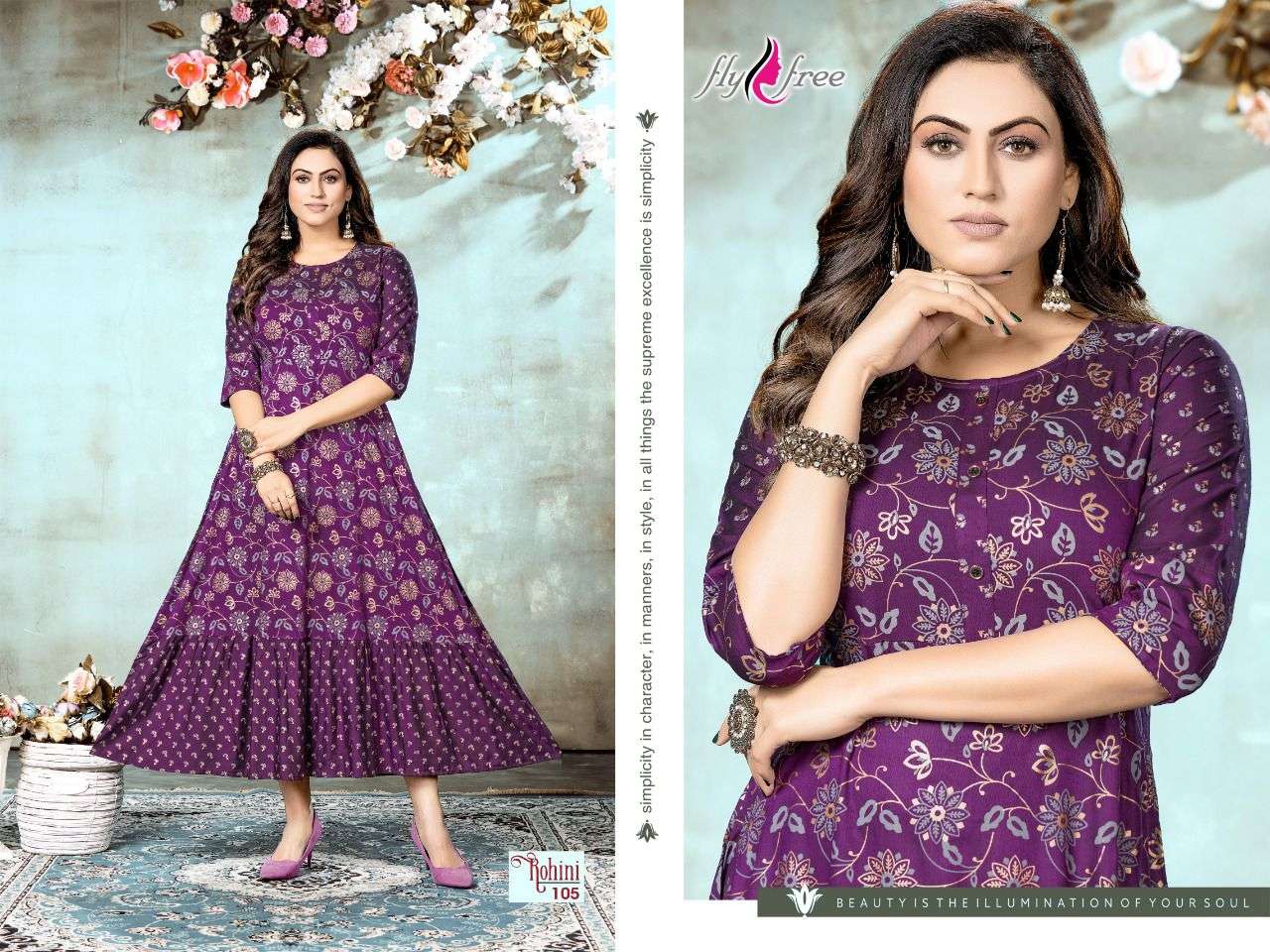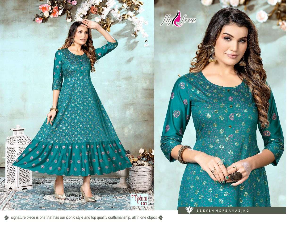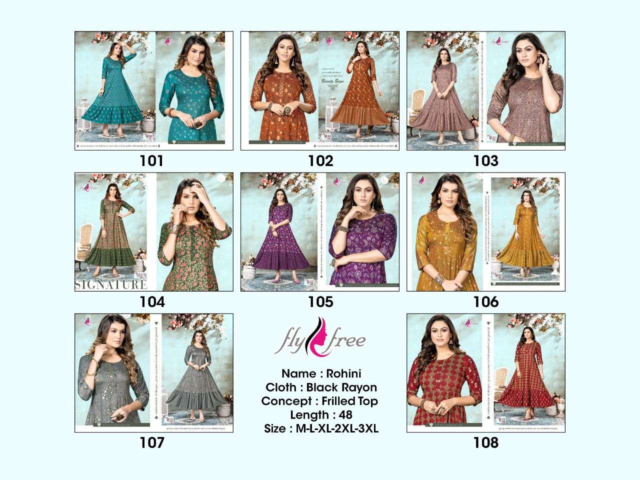 FLY FREE ROHINI VOL.1 HEAVY BLACK RAYON FRILLED TOP KURTI CATALOG WHOLESALE BEST RATE